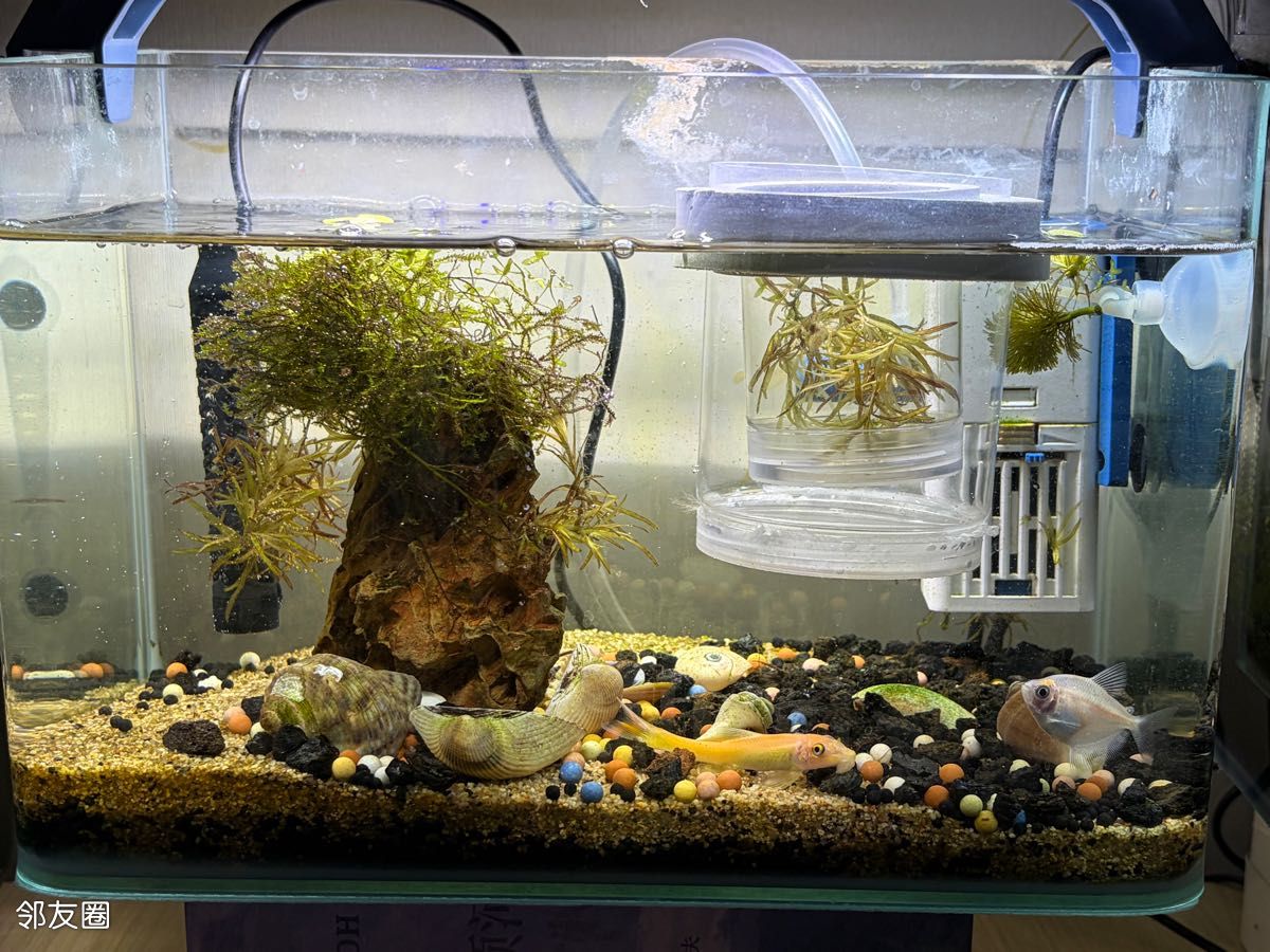 之前发过帖子,女儿做过一个鱼缸造景挺漂亮的!这个鱼缸里养了两条小鱼和几只小虾,每天看着它们自由自在的游来游去很开心!