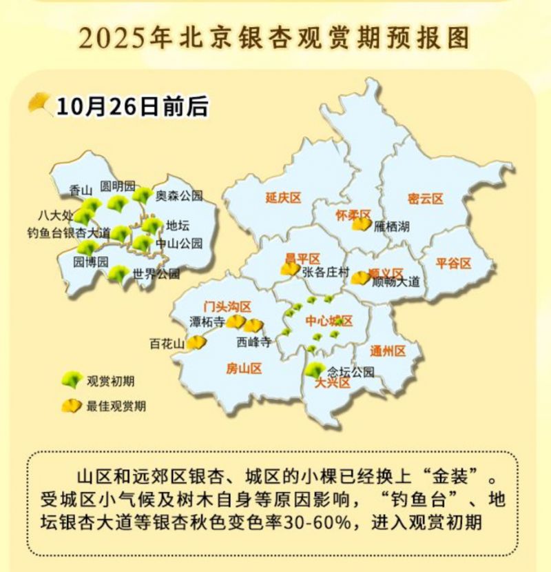 北京银杏叶观赏地点:钓鱼台银杏大道