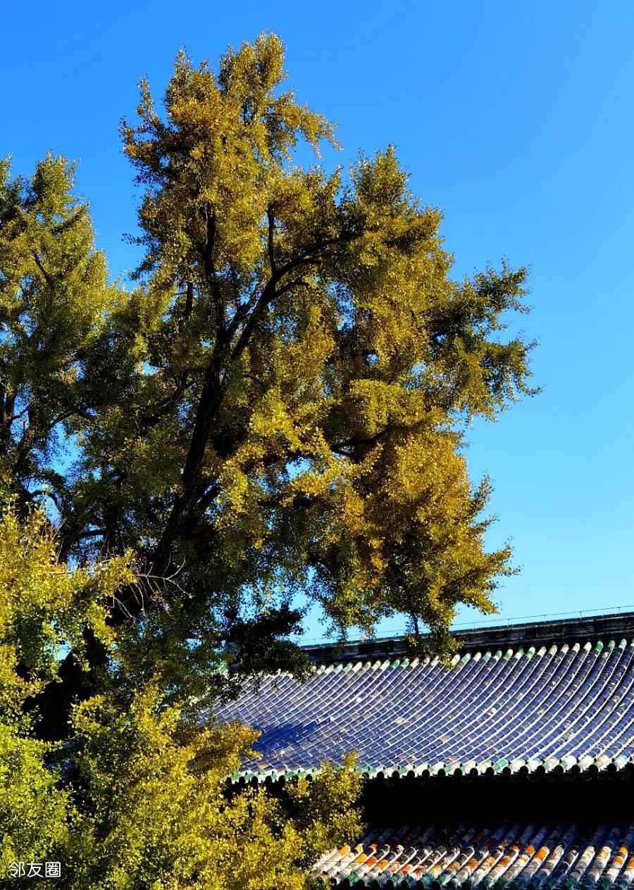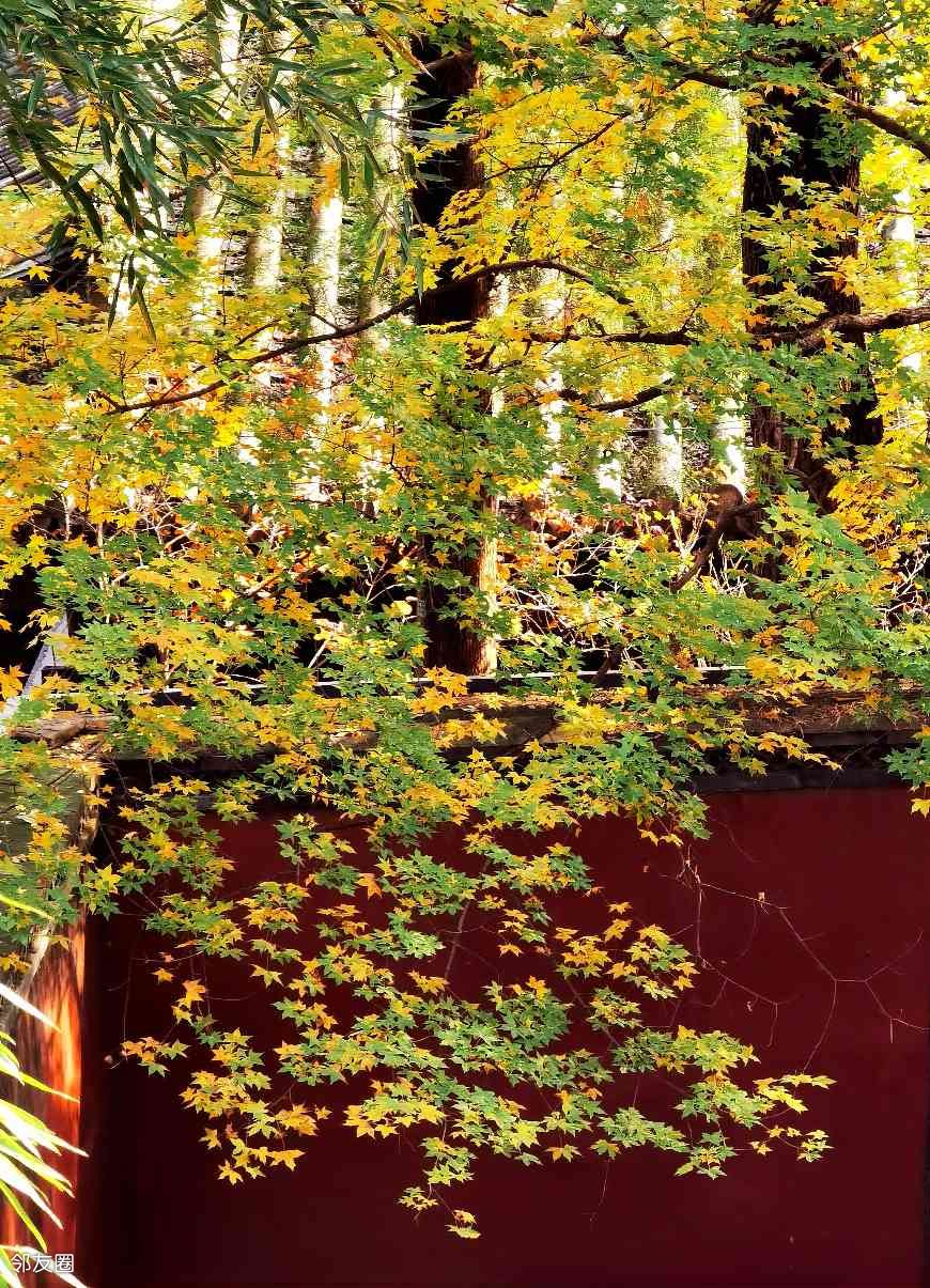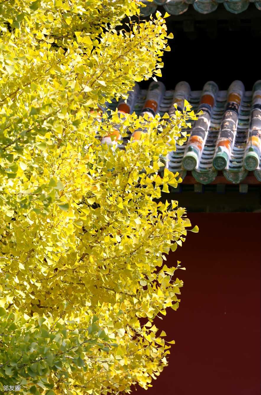 古刹红墙彩瓦的沉静,与古树热情奔放的明艳,构成一种绝妙的组合,如梦如幻。置身巨树笼罩的殿堂之前,仿佛感到历史就发生在眼前,或者人已穿越千年之前,总有不真实的感觉。就连微风拂过枝叶,发出的,也仿佛是岁月的回响……