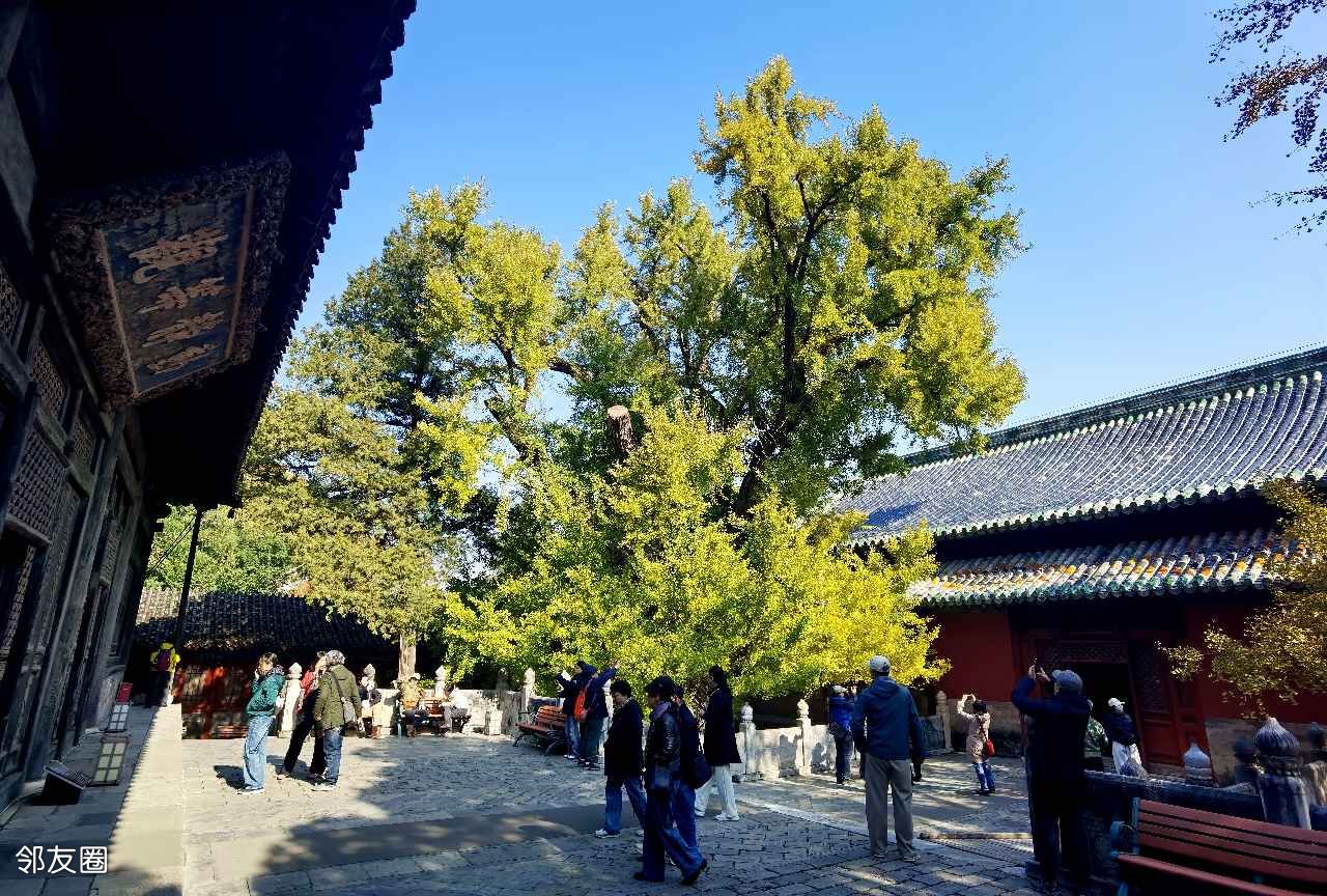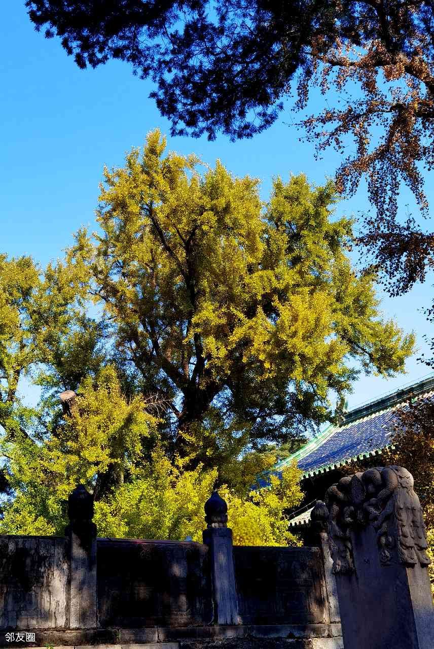 光阴飞度,岁月匆匆,不知不觉,秋天的脚步已然踏进千年古刹,古老的庭院瞬间披上七彩斑斓的锦绣。最耀眼的一抹色彩,当属那棵一身金黄的千岁银杏。千年古刹和千岁银杏携起手来,让这种美丽的邂逅穿越千年,养我们的眼。