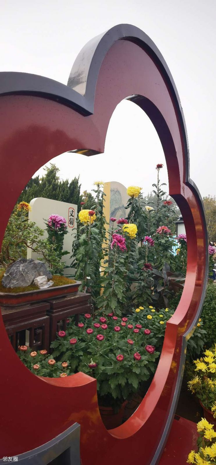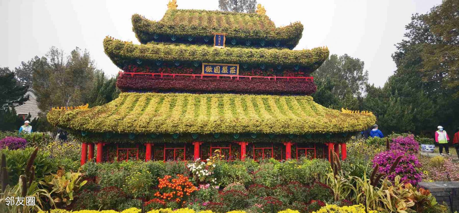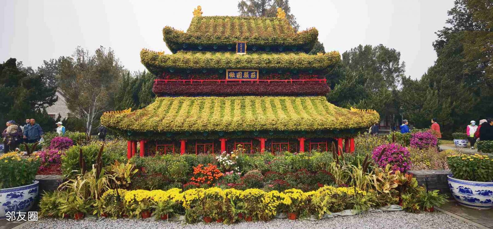 今年菊花展,还搭建了一座植物楼阁,引得游客纷纷拍照