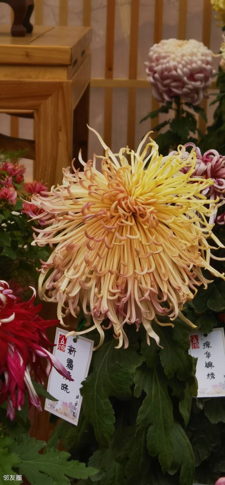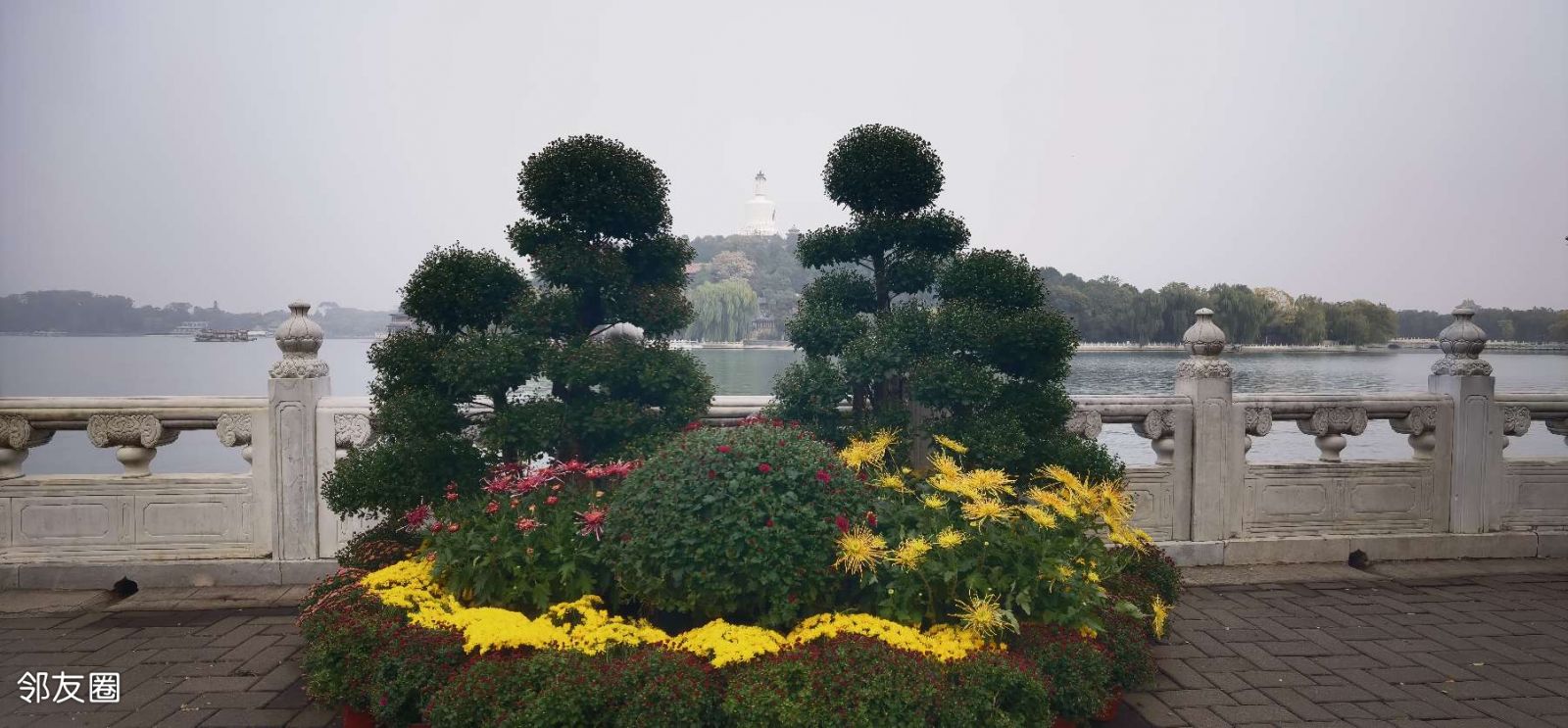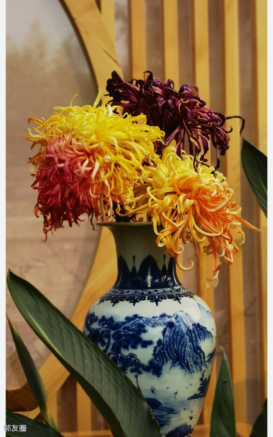 北海菊花展开幕的第一天一大早就去了,看到了下面这两瓶菊花,很惊艳,所以昨天是奔着再去看看这两盆菊花的