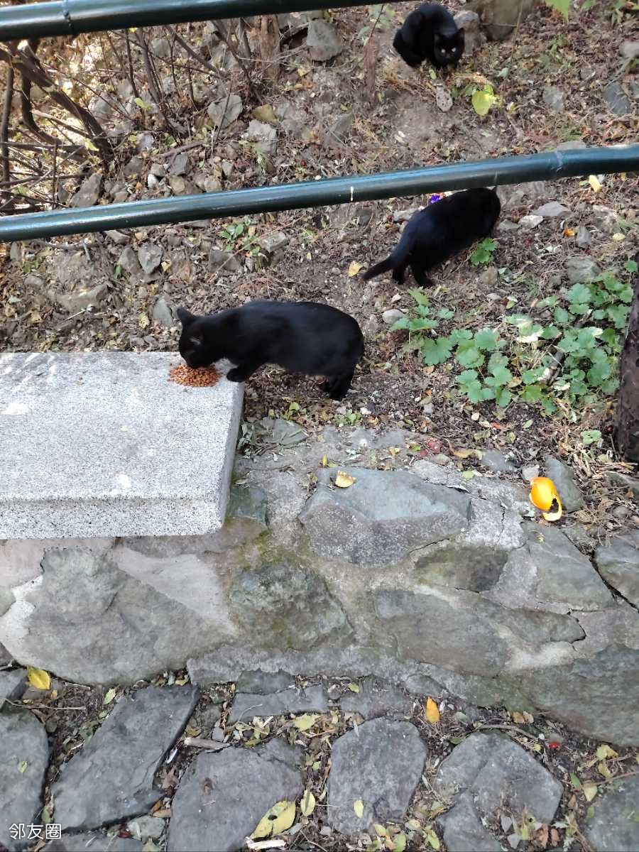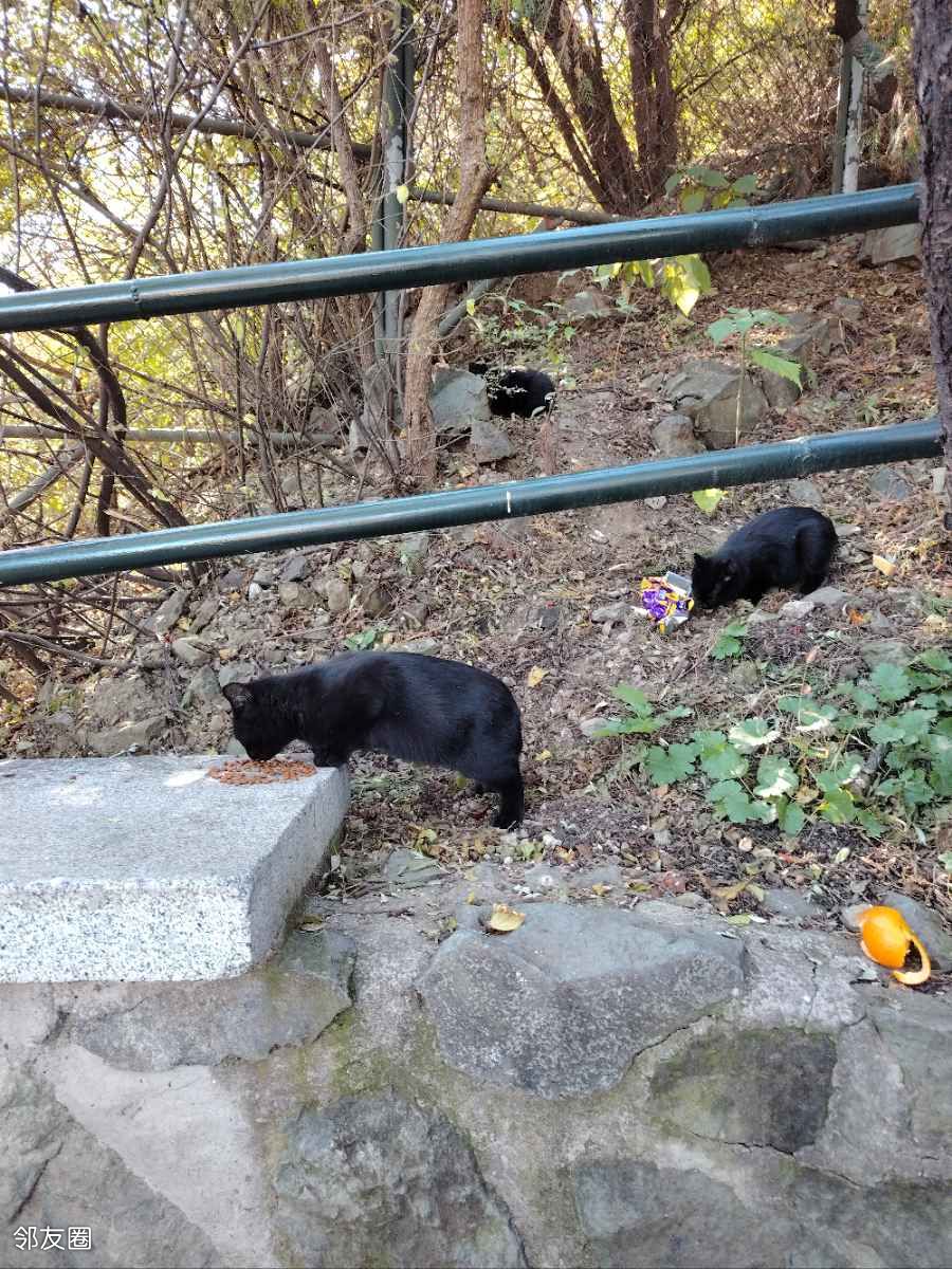途中经过松鼠的窝点给了一个大枣,下山遇到三只小黑猫,给了一包猫粮