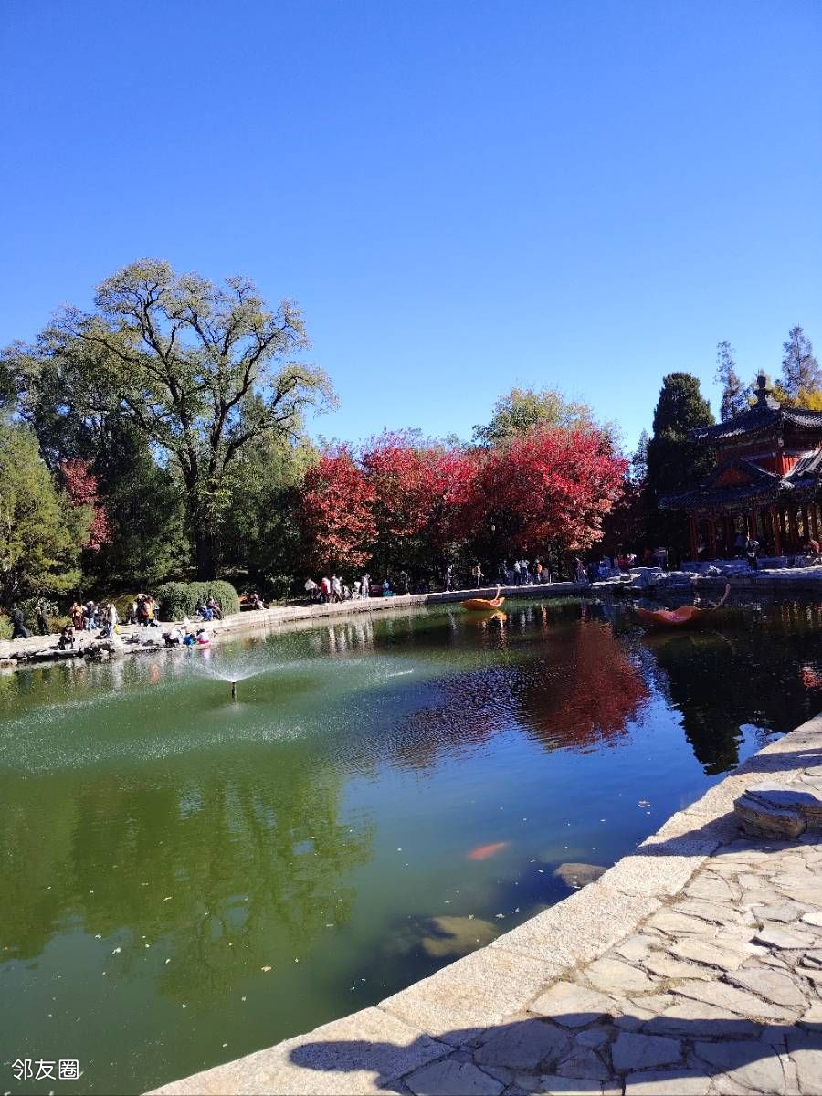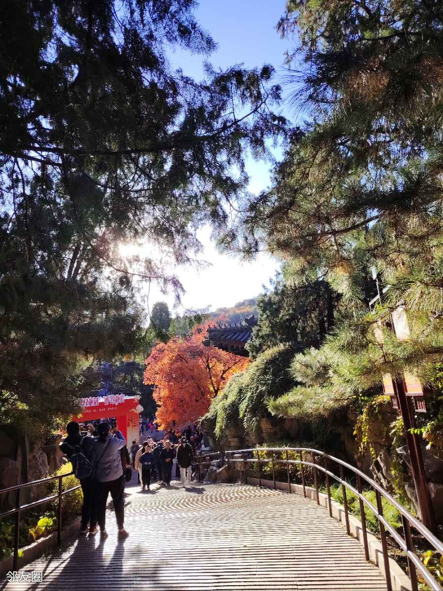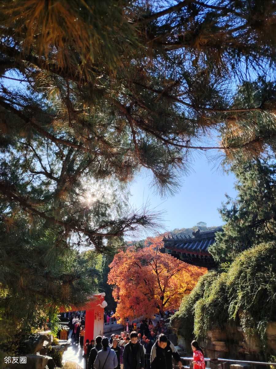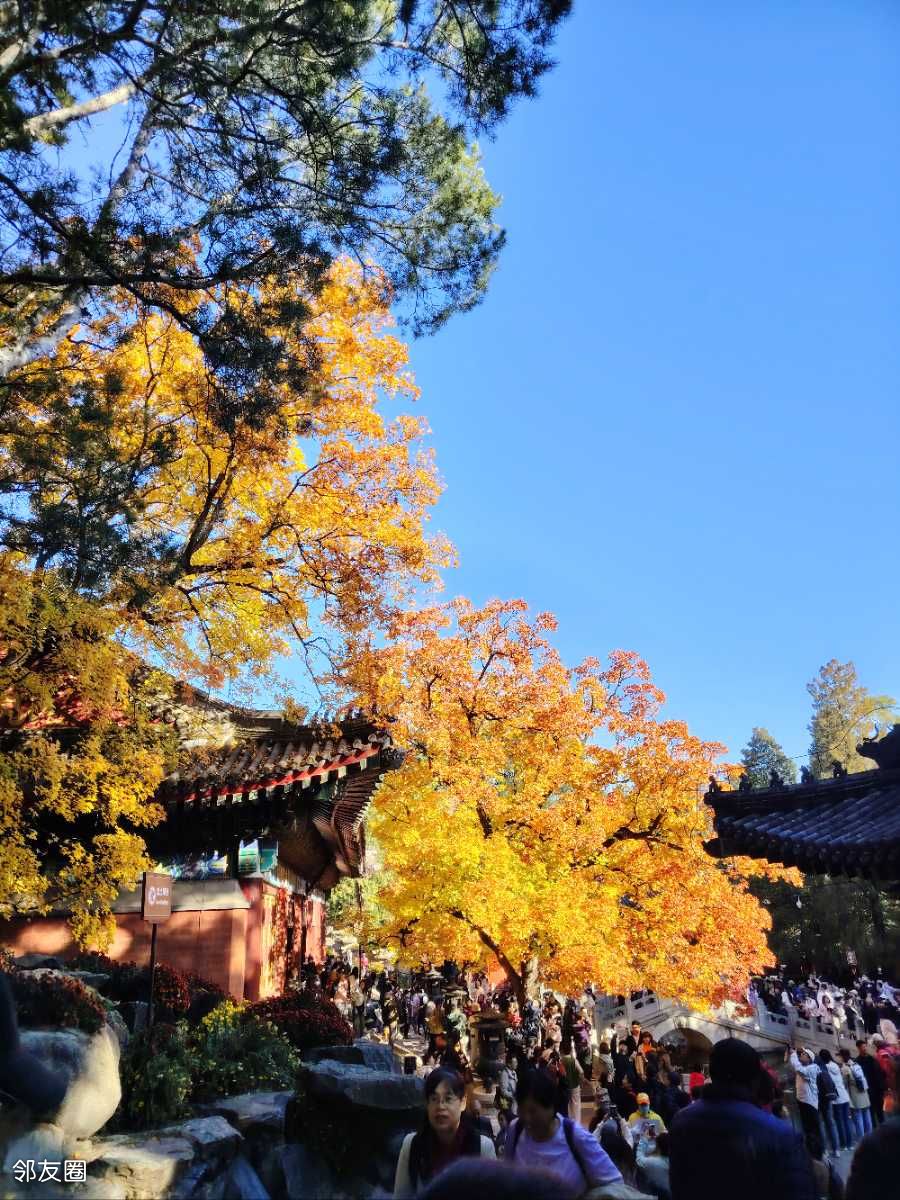 我今天也在香山。东门勤政殿的两棵枫树太美了。年年都是冲着这两棵枫树去的。今年最美