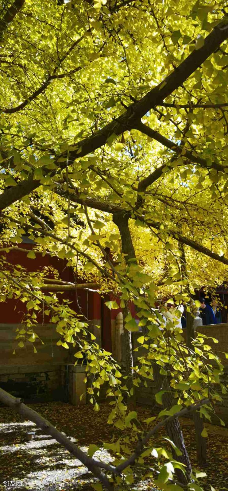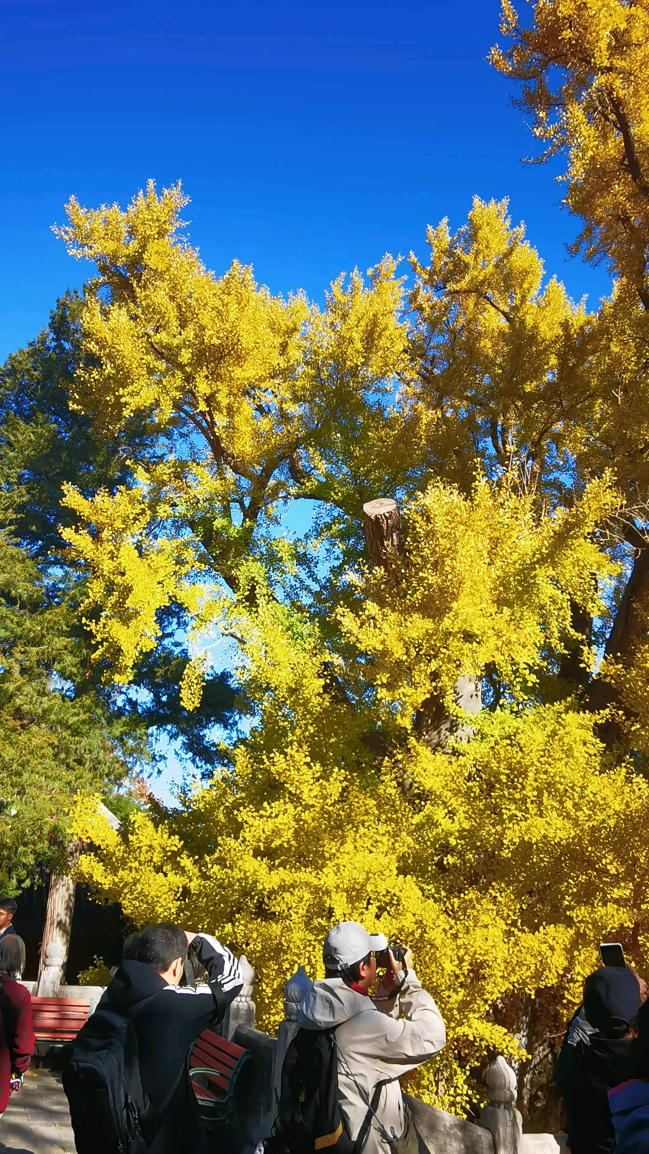 #最美秋天 大觉寺里的千年树王银杏达到了最辉煌的黄色!