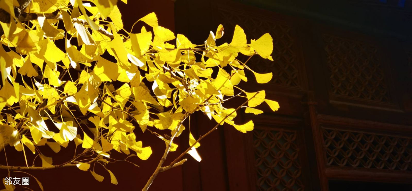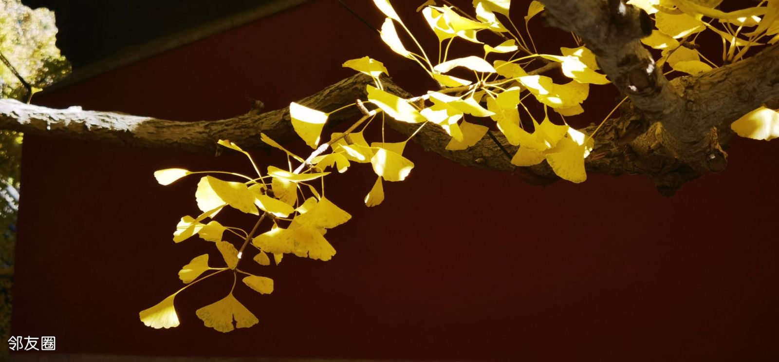 大觉寺里的千年树王银杏达到了最辉煌的黄色!