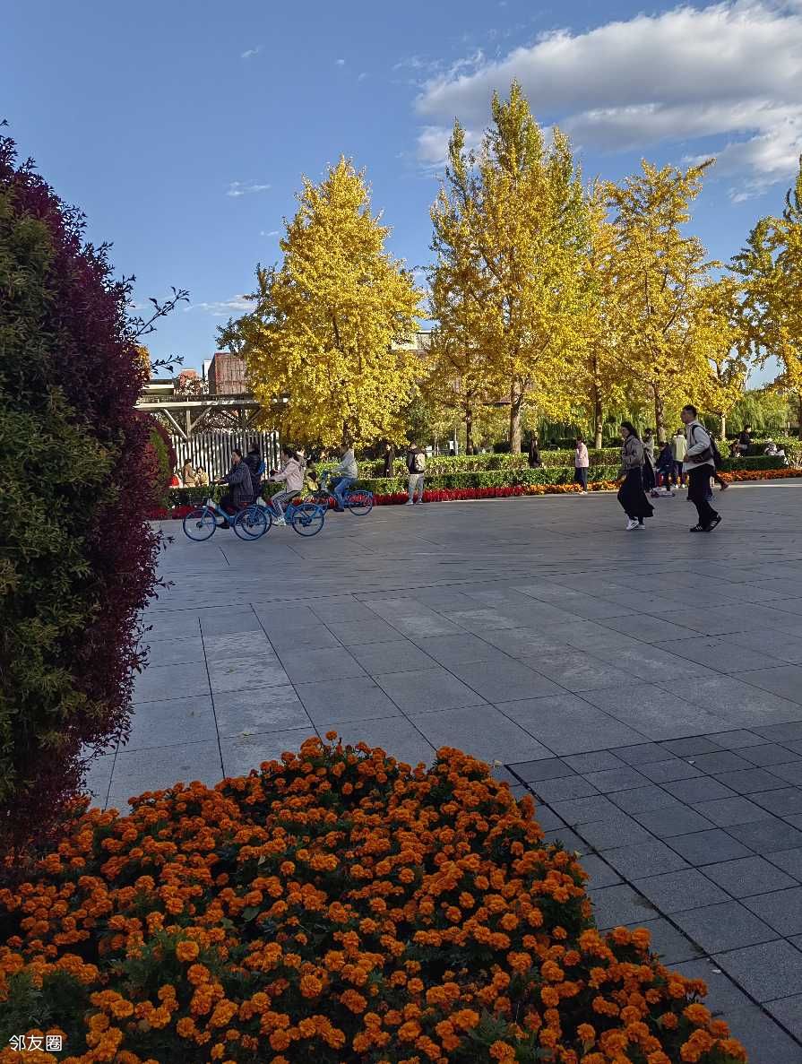 午后出门赏秋晒太阳