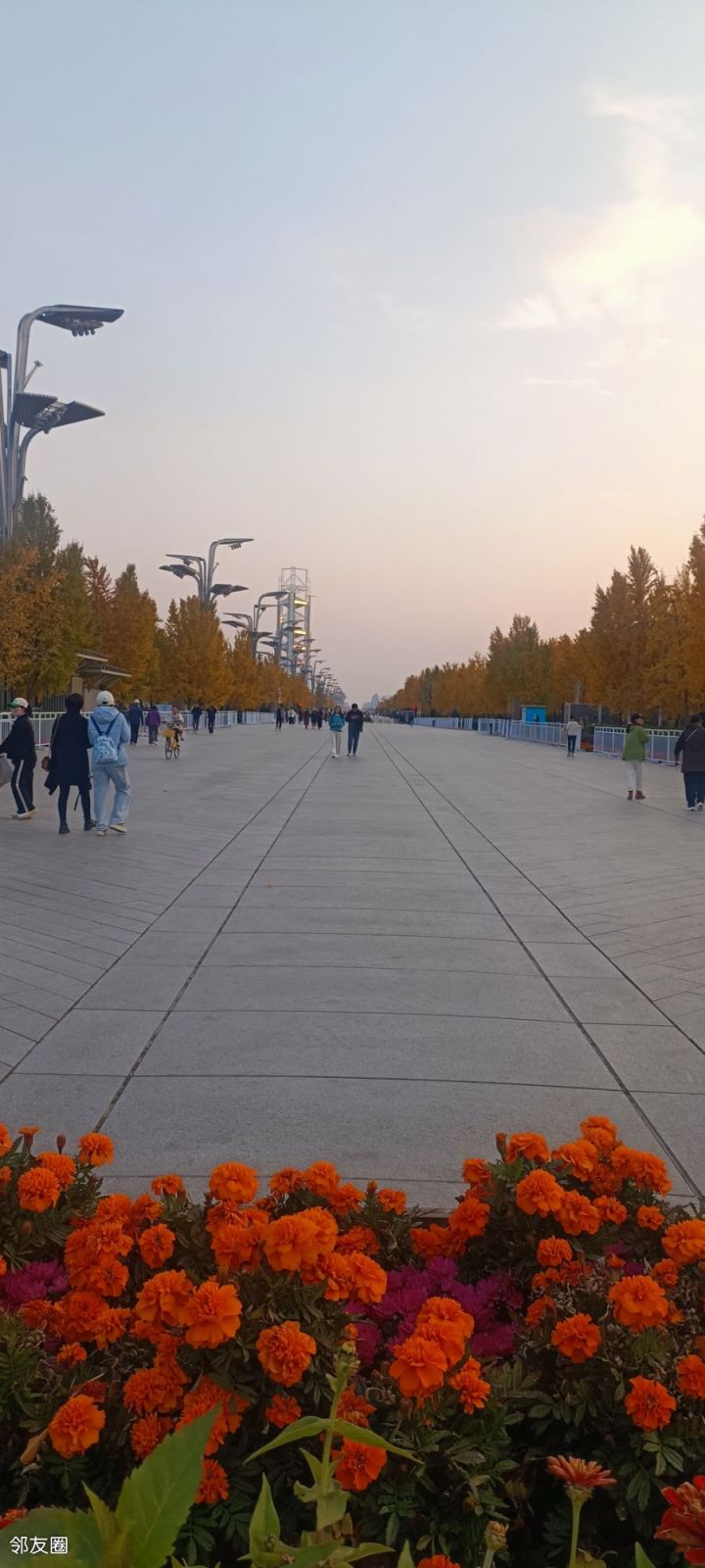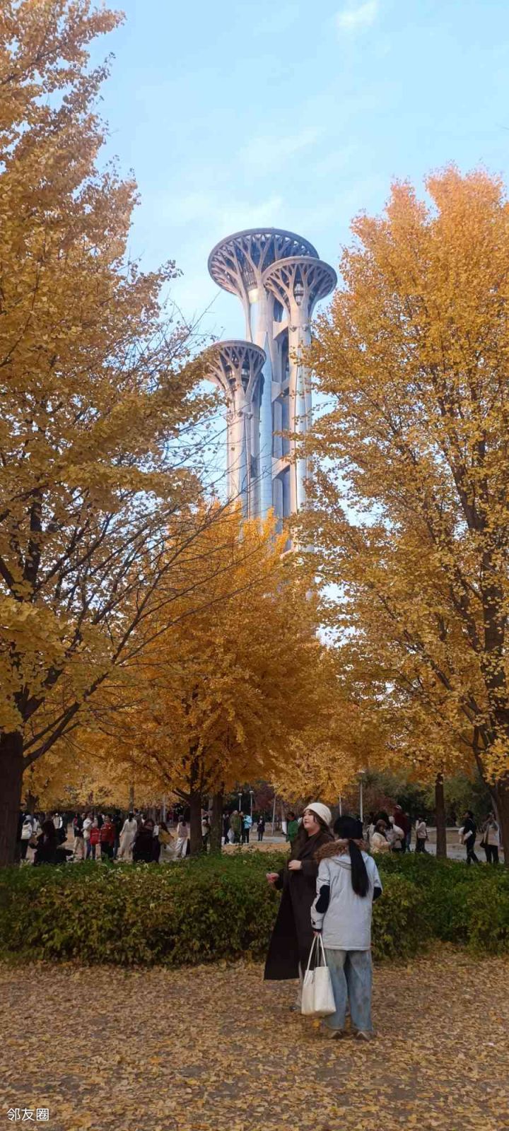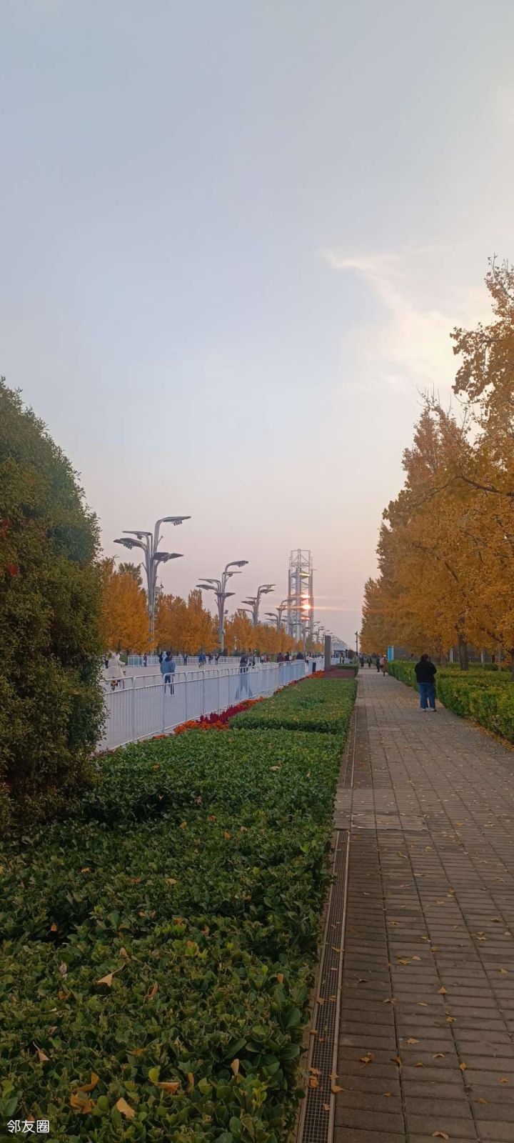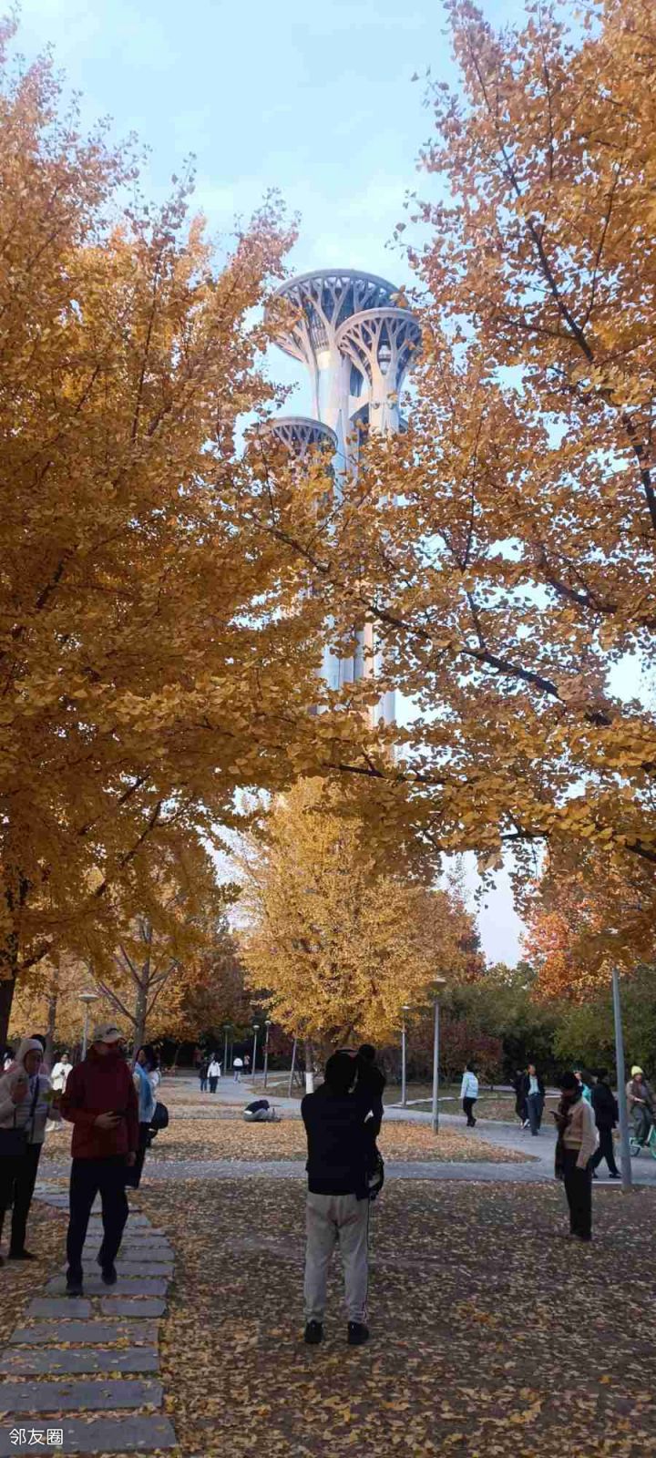 道路两侧的银杏叶已染成浓郁的金黄色,落叶铺在路面形成“金色地毯”,搭配高大的树木,形成了开阔又温暖的秋景长廊。