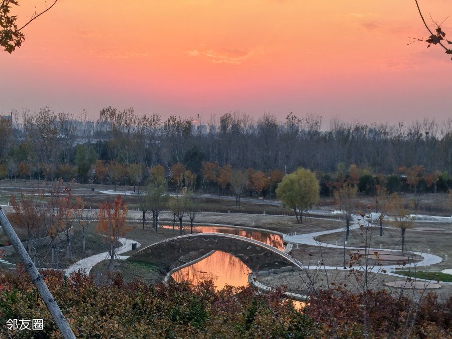 今天遛弯回来晚了,因为走多了,干了十一公里。以外的收获是拍到了夕阳红。