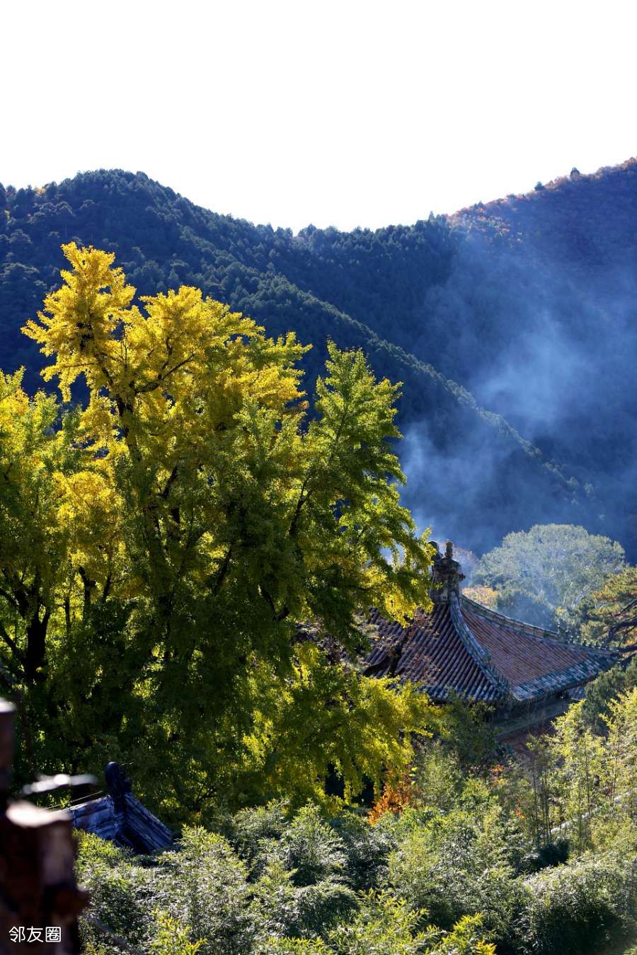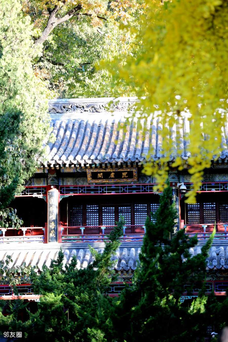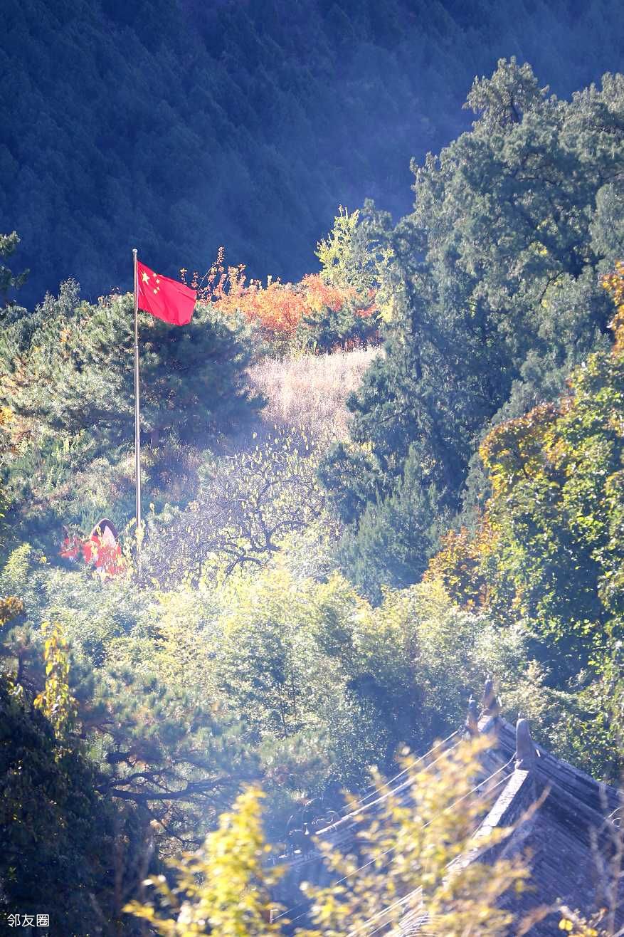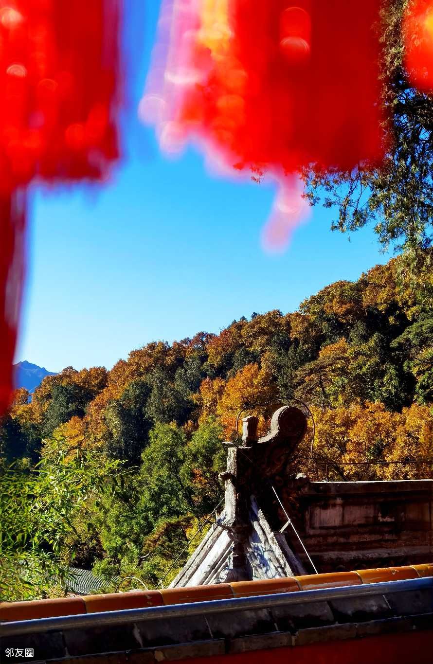 站在寺中最高的毗卢阁远眺,远山层林尽染,近处殿宇巍峨。秋风过耳,不似春风撩人,也不似夏风燥热,而是带着澄澈的凉,让人心神清明。