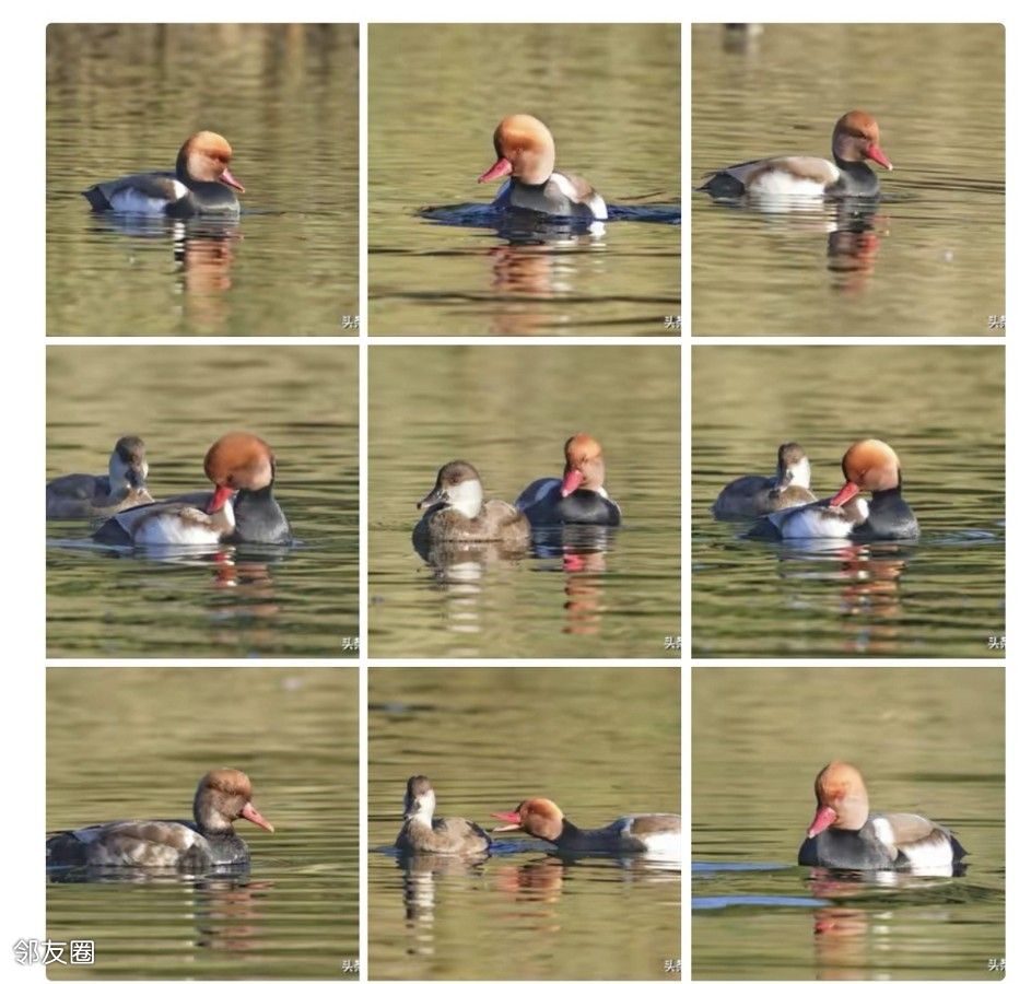 其实这种是赤嘴潜鸭,但他们头顶上的毛色太阳下显得很红很红,被玉渊潭拍摄大叔们亲切滴称为川普鸭,形象不?很形象!