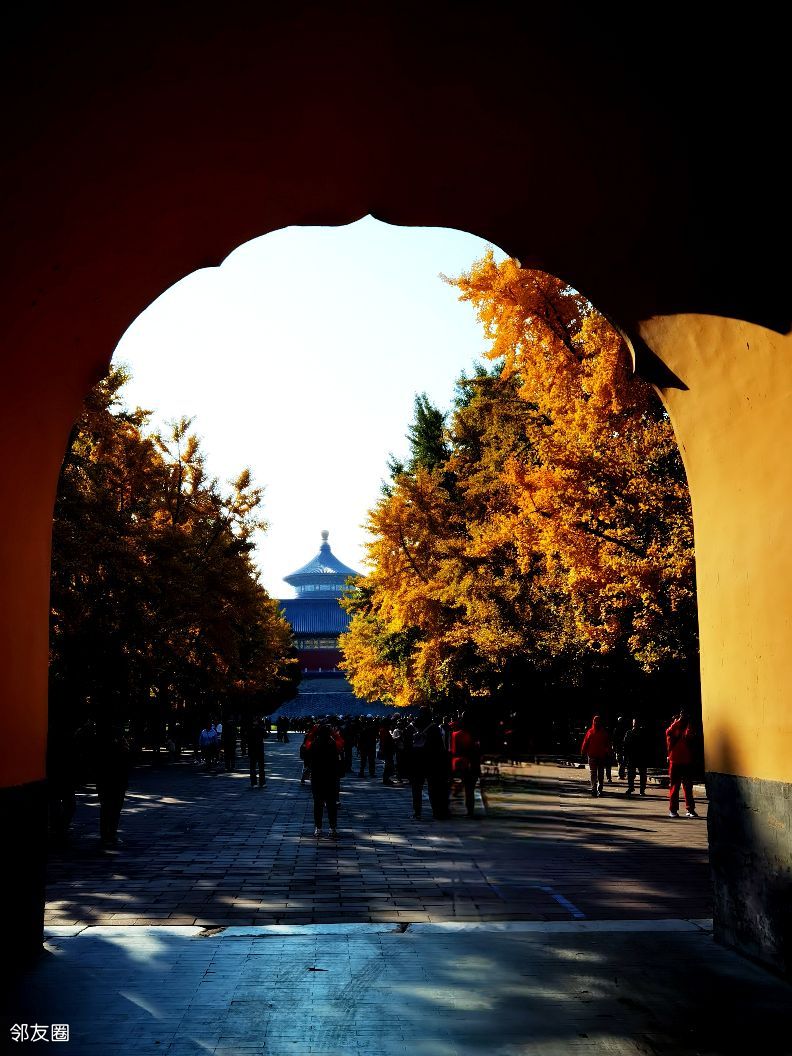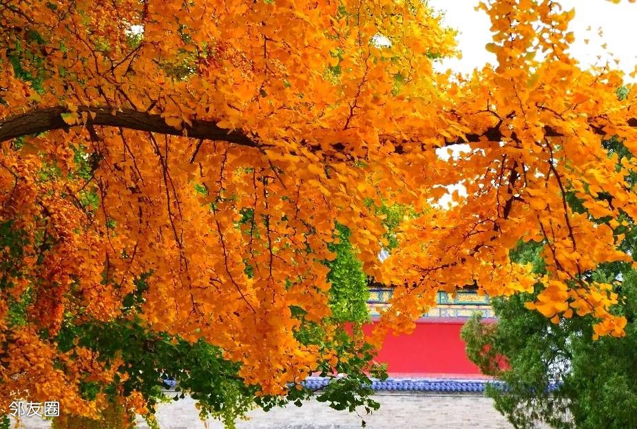 天坛的秋是高傲的,从不孟浪媚俗、轻浮张扬,而是始终端庄大气、优雅从容。这里的秋色一上线,就是大写的高端。