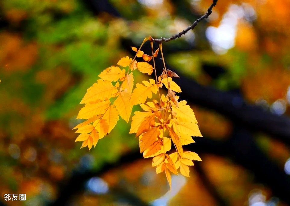 逆着阳光,宫灯似乎发出幽微的光,而垂在其上一枝金黄的银杏枝桠,像极了宫灯闪耀的火苗,正在极力照亮遥远的记忆……
