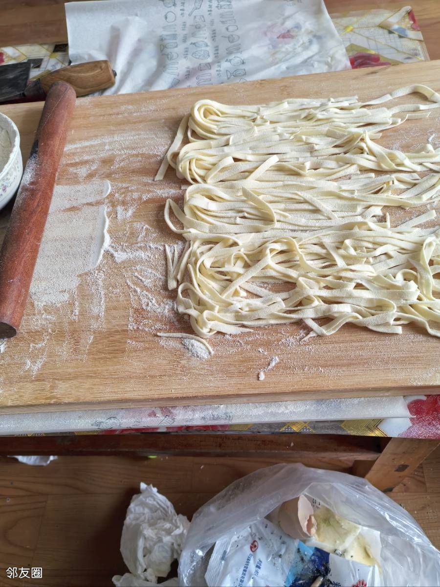 今天想吃手擀面了。队友不在家,只有自己做了。