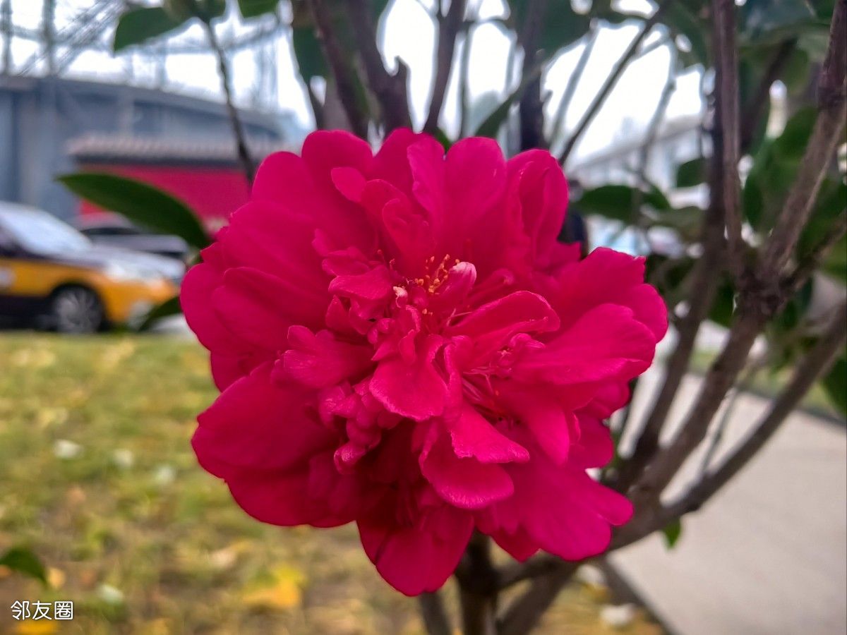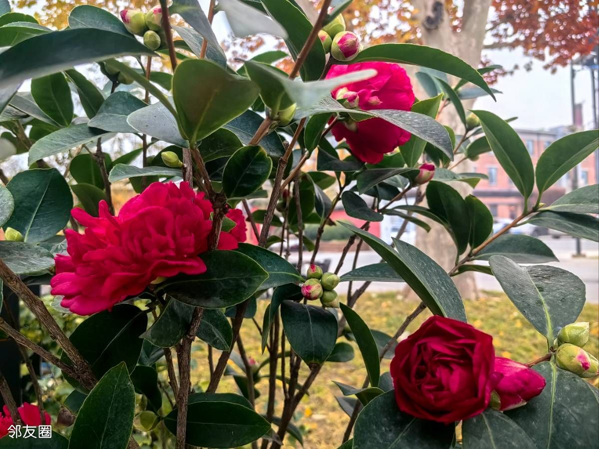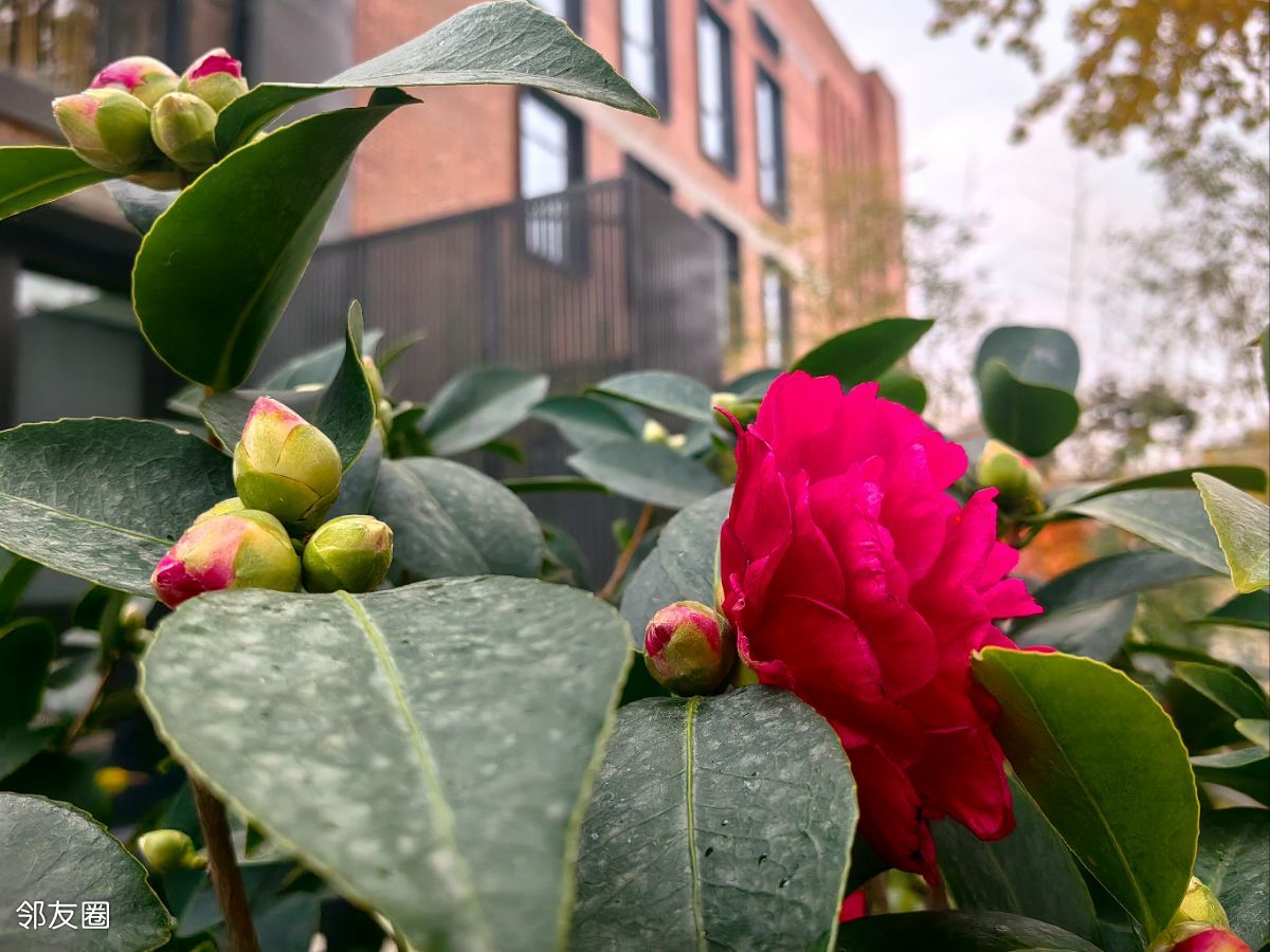 看到过盛开的茶花,但没在这个季节看到在室外,并且还是盛开的这么好,又这么大朵的茶花,美啦醉啦~