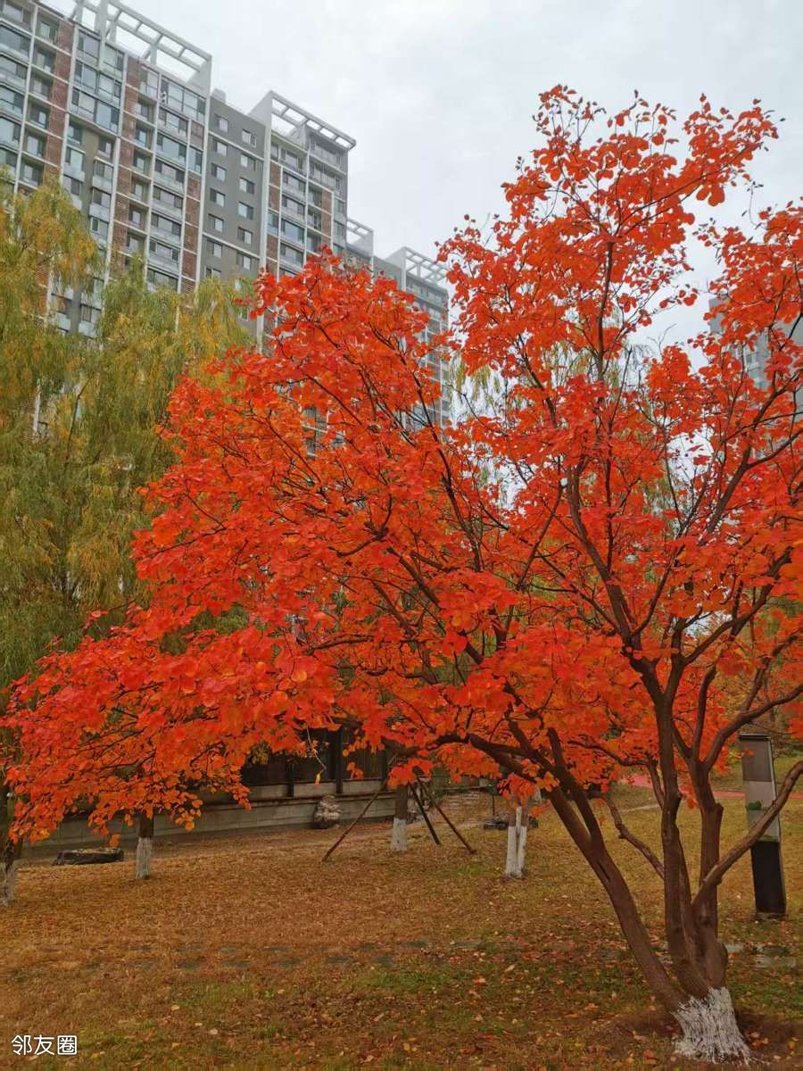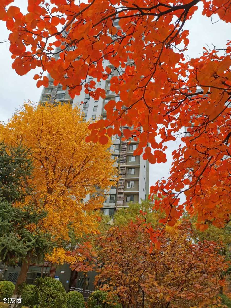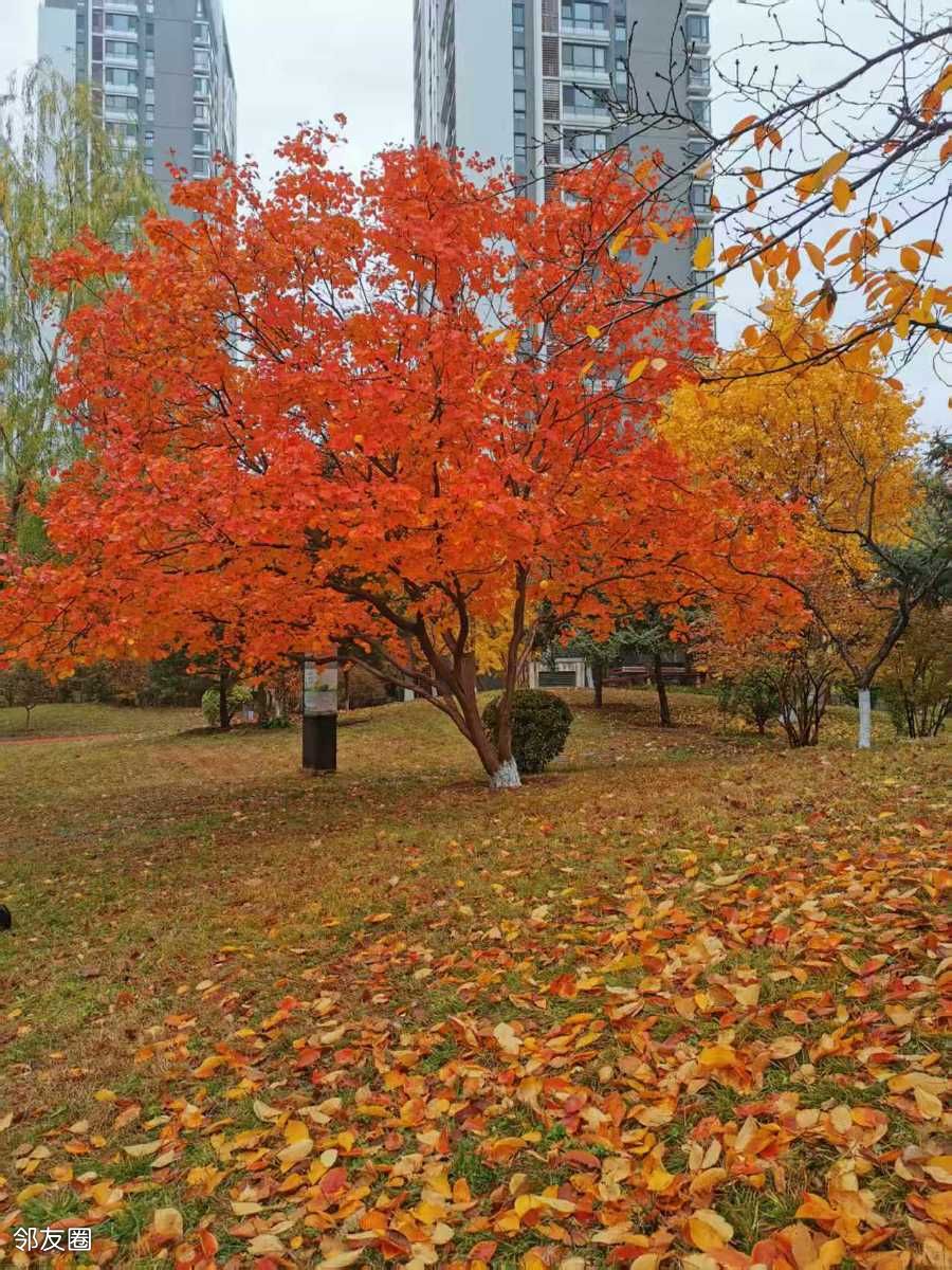 好天气好心情,沿着小区塑胶跑道走了一大圈,欣赏秋日最后的绚烂,这一场雨后,叶子落了不少,渐渐的,地上的叶子比树上的多,且看且珍惜