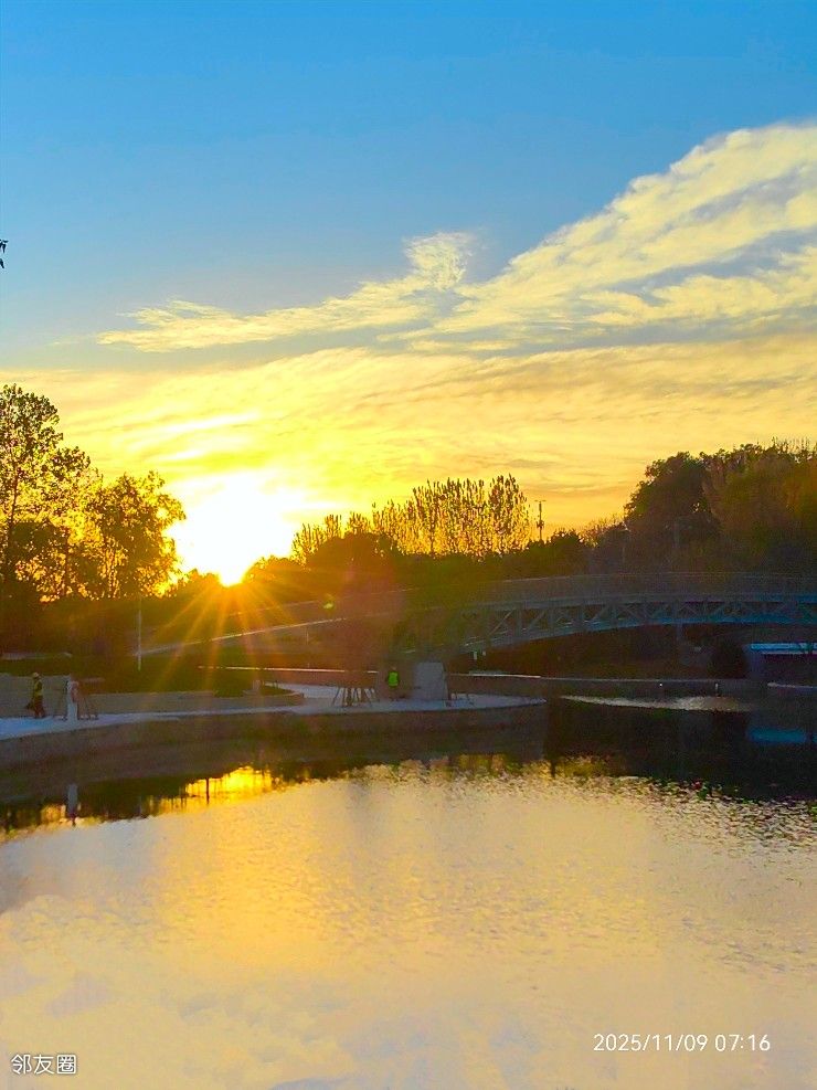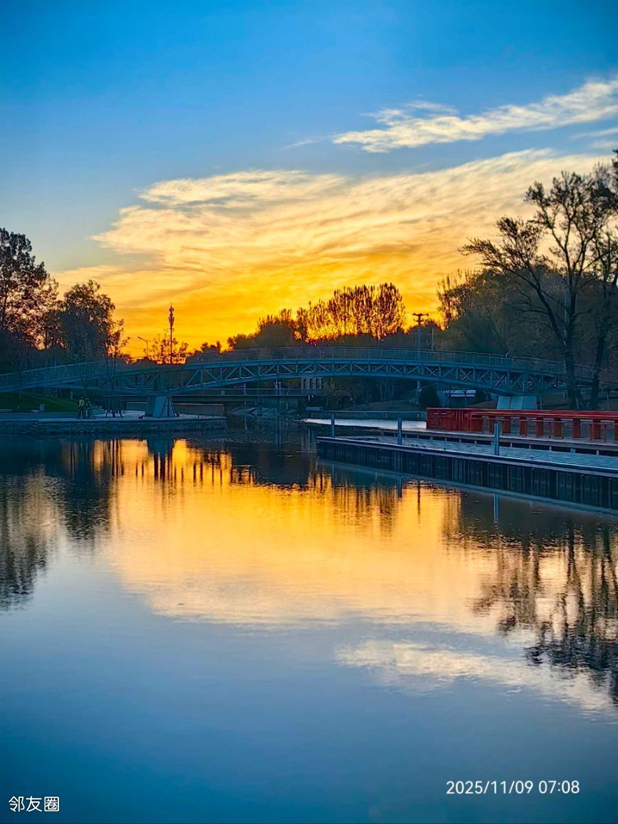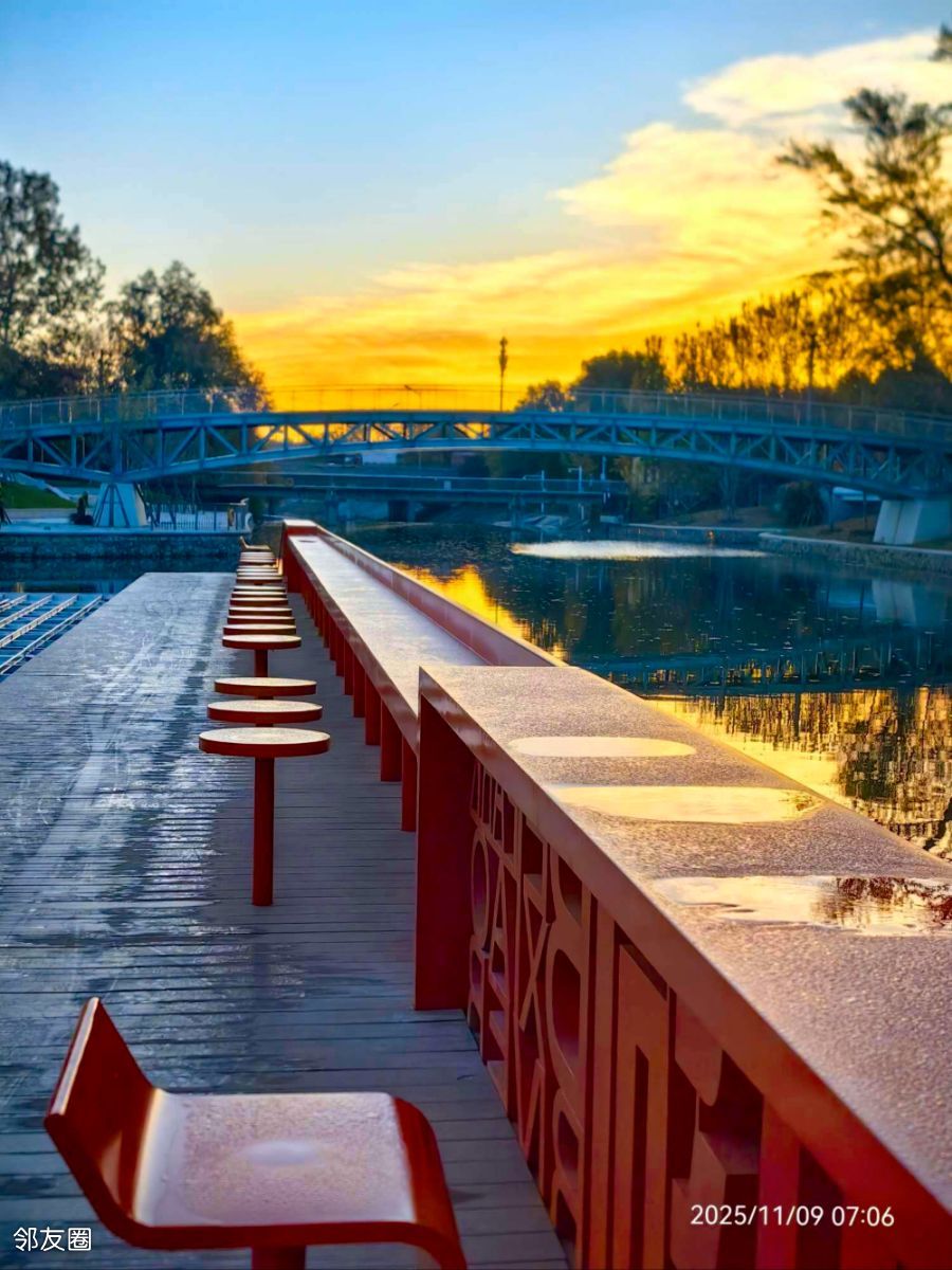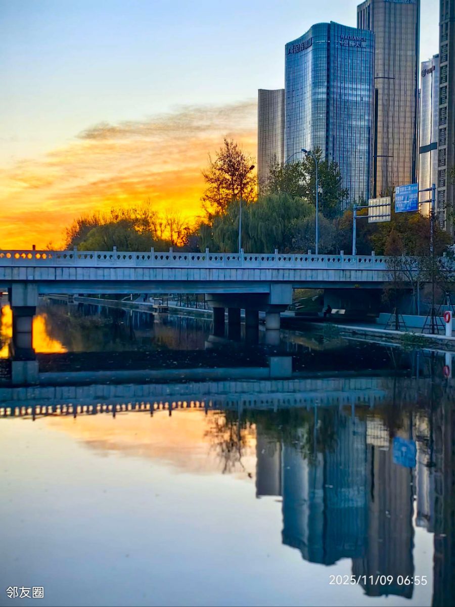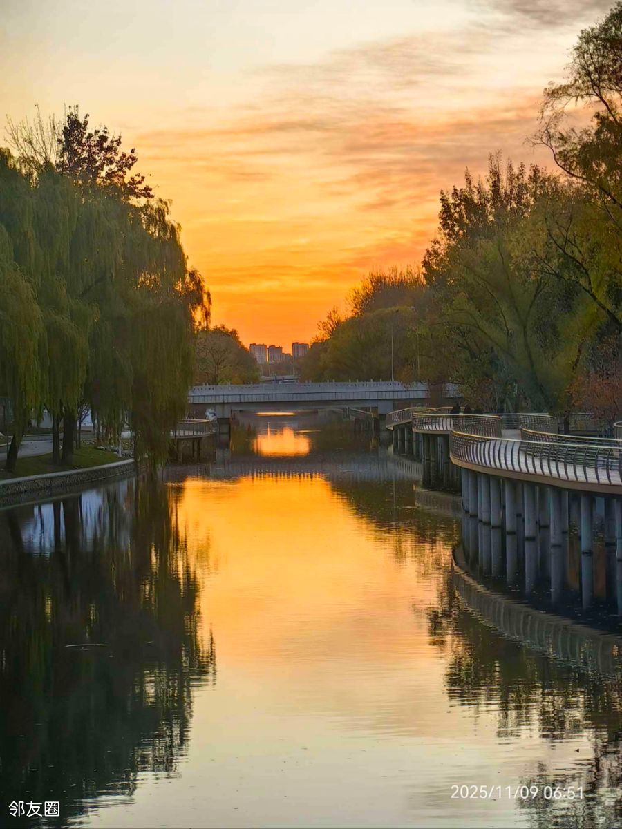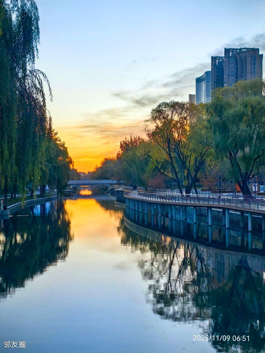 晨练随拍:朝霞映衬下多姿多彩的北小河。