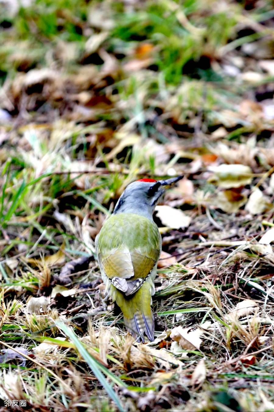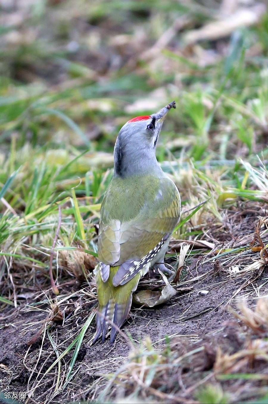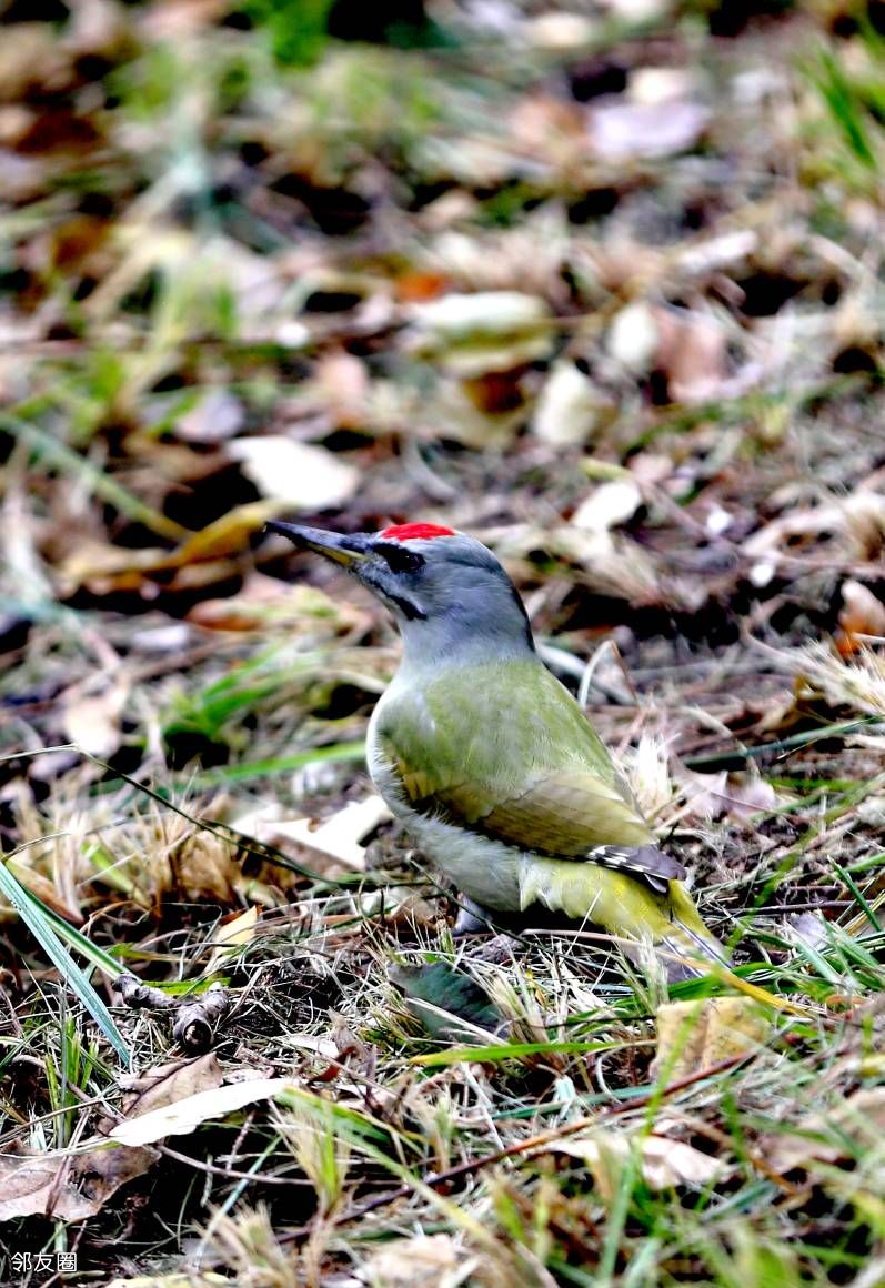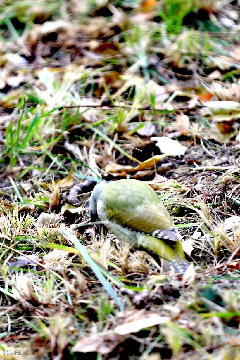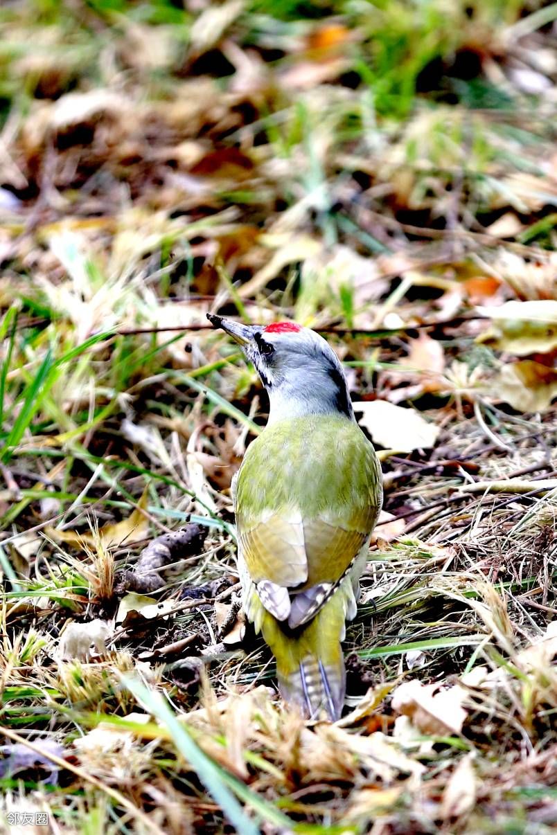 啄木鸟不是应该啄木吗?而这一只为什么在啄泥呢?网查一下,它叫灰头绿啄木鸟。这名字起的是不是有些潦草?而且特征也没有全覆盖。如果仅仅是描述外部颜色的话,它应该叫“灰头红顶绿啄木鸟”