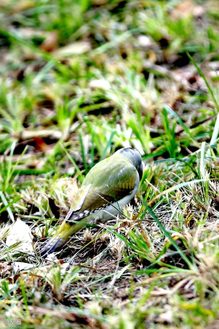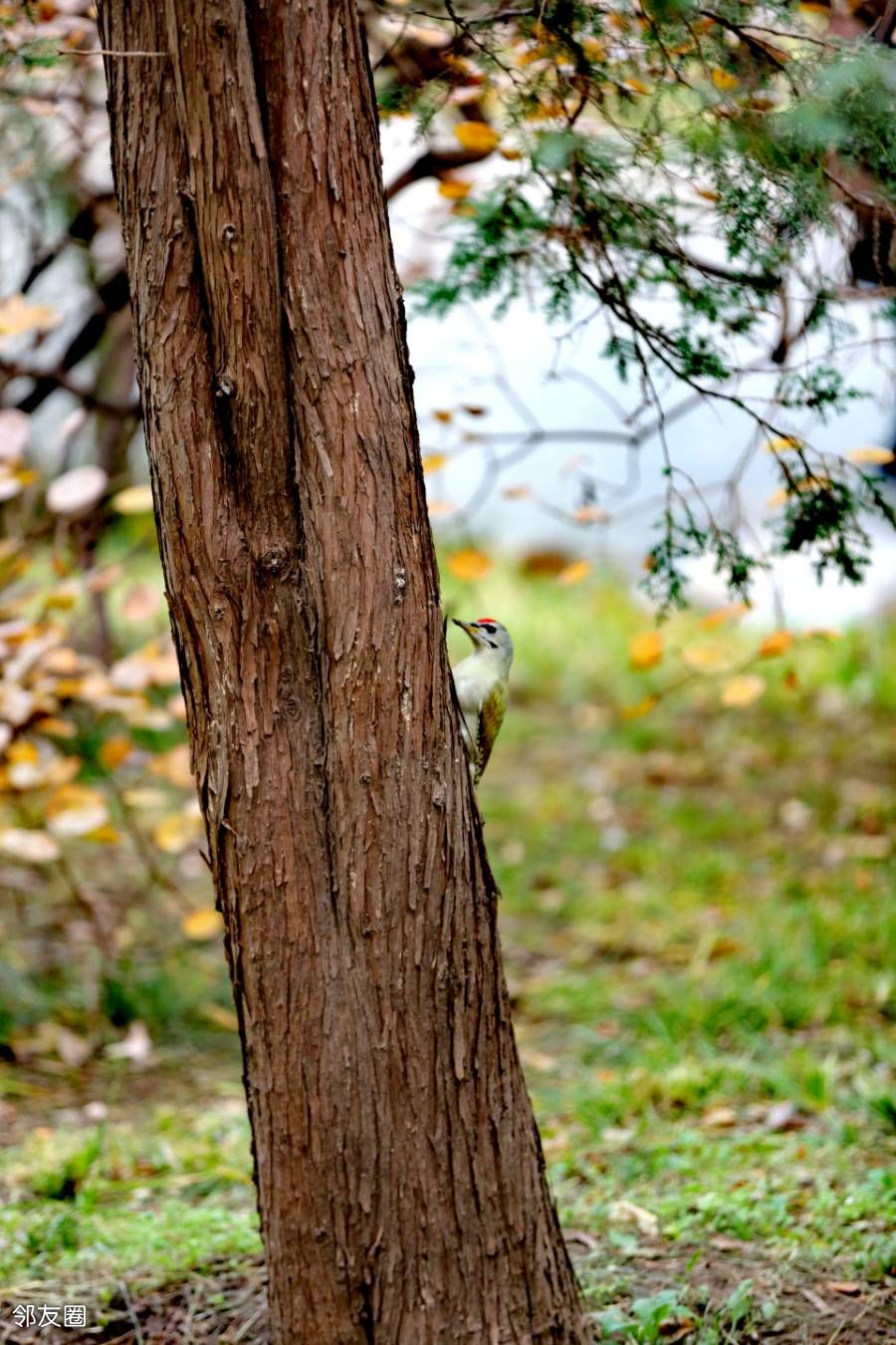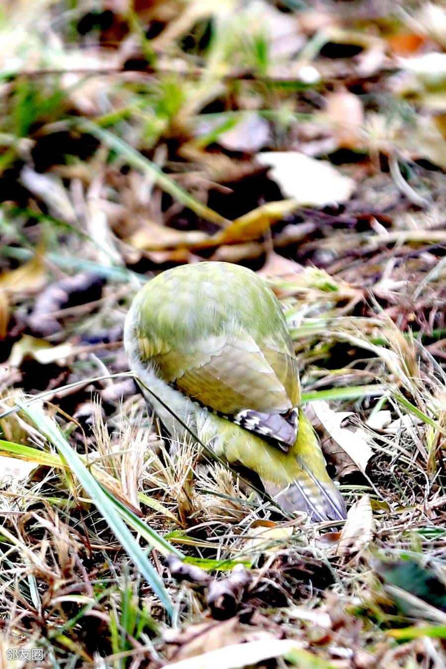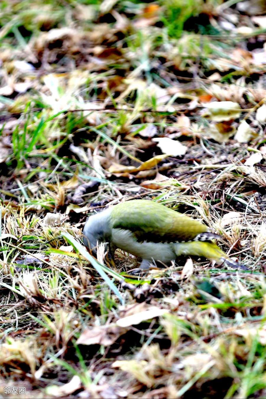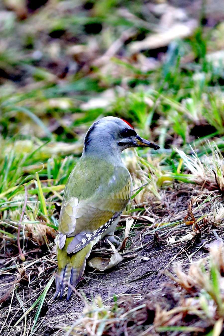 啄木鸟不是应该啄木吗?而这一只为什么在啄泥呢?网查一下,它叫灰头绿啄木鸟。这名字起的是不是有些潦草?而且特征也没有全覆盖。如果仅仅是描述外部颜色的话,它应该叫“灰头红顶绿啄木鸟”