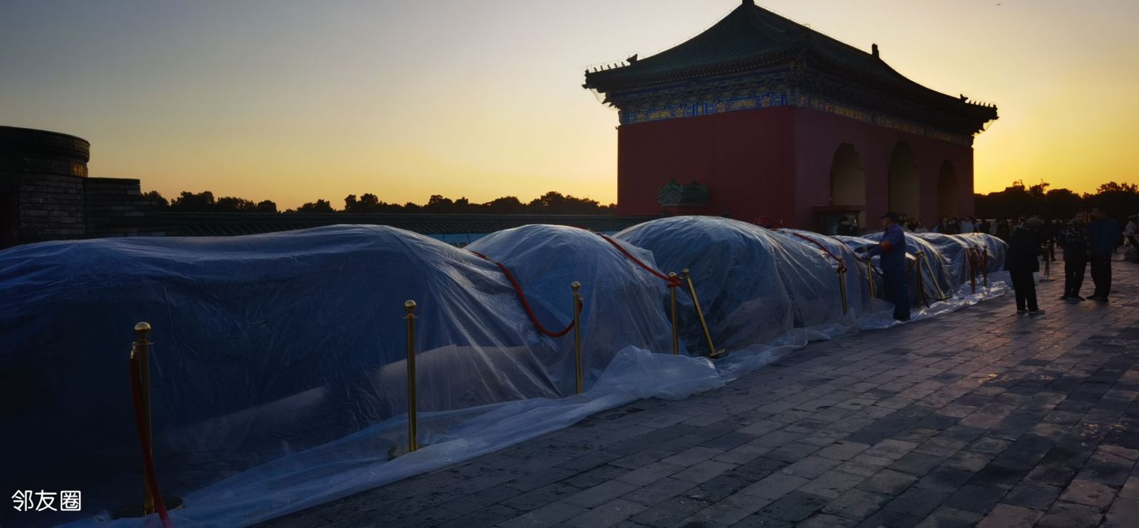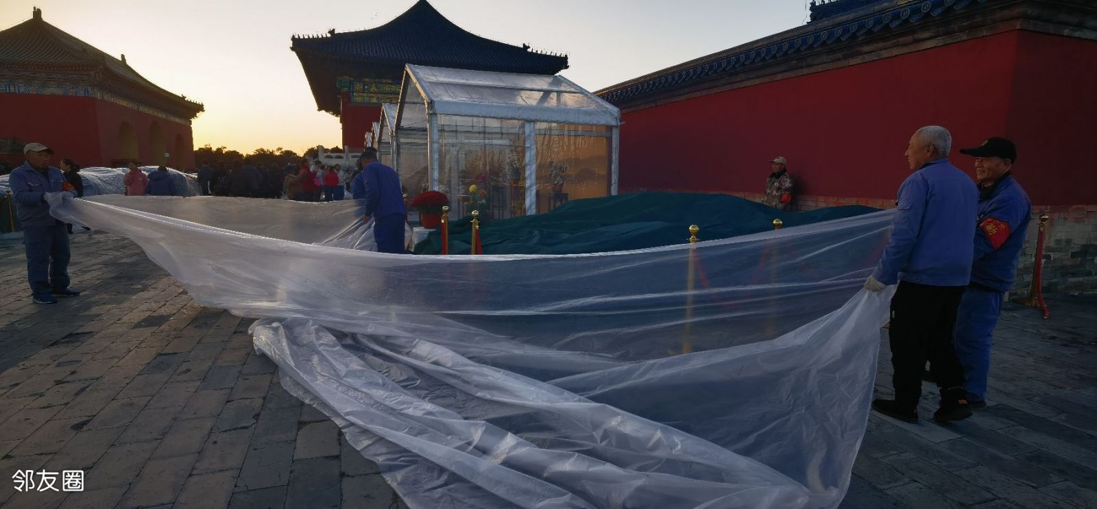 为啥子说赏了一半菊花展呢?因为昨天是天坛菊花展的最后一天,园方下午开始撤展了,我四点多进入的时候东侧的菊花已经被塑料布遮盖起来了!