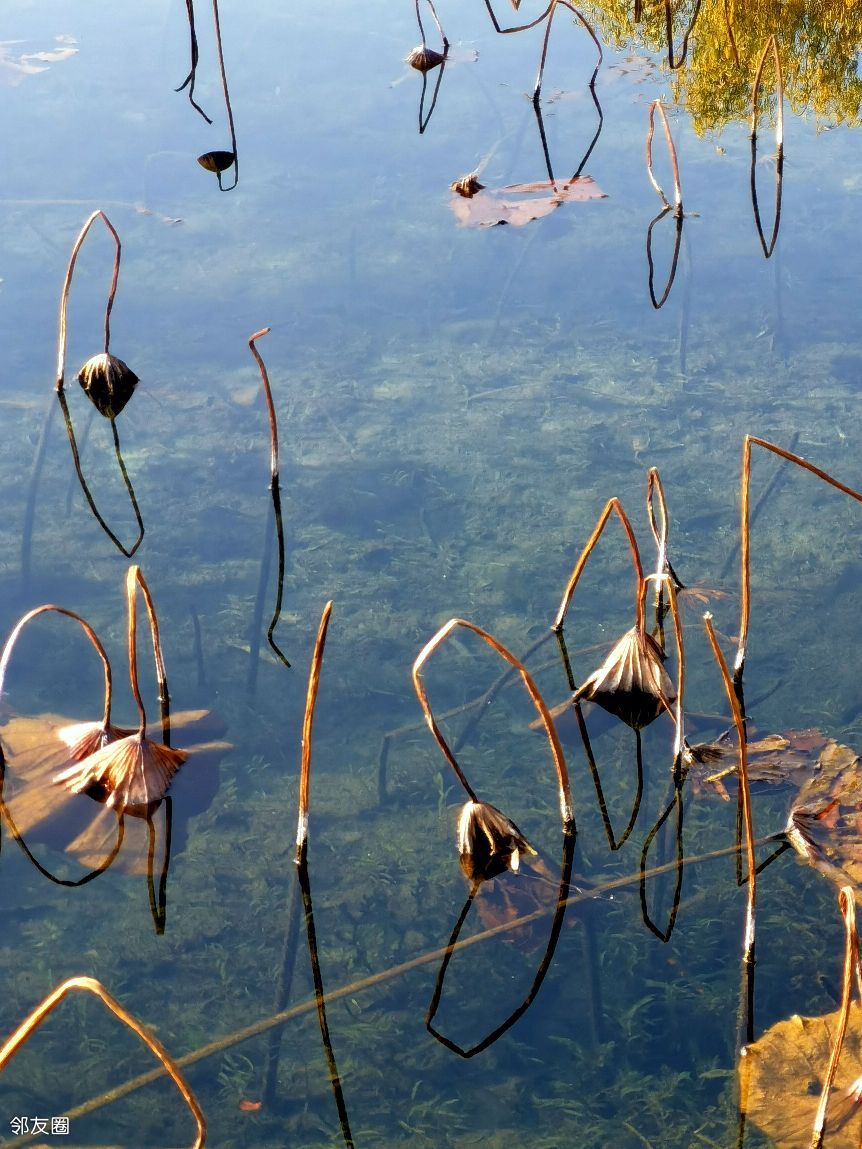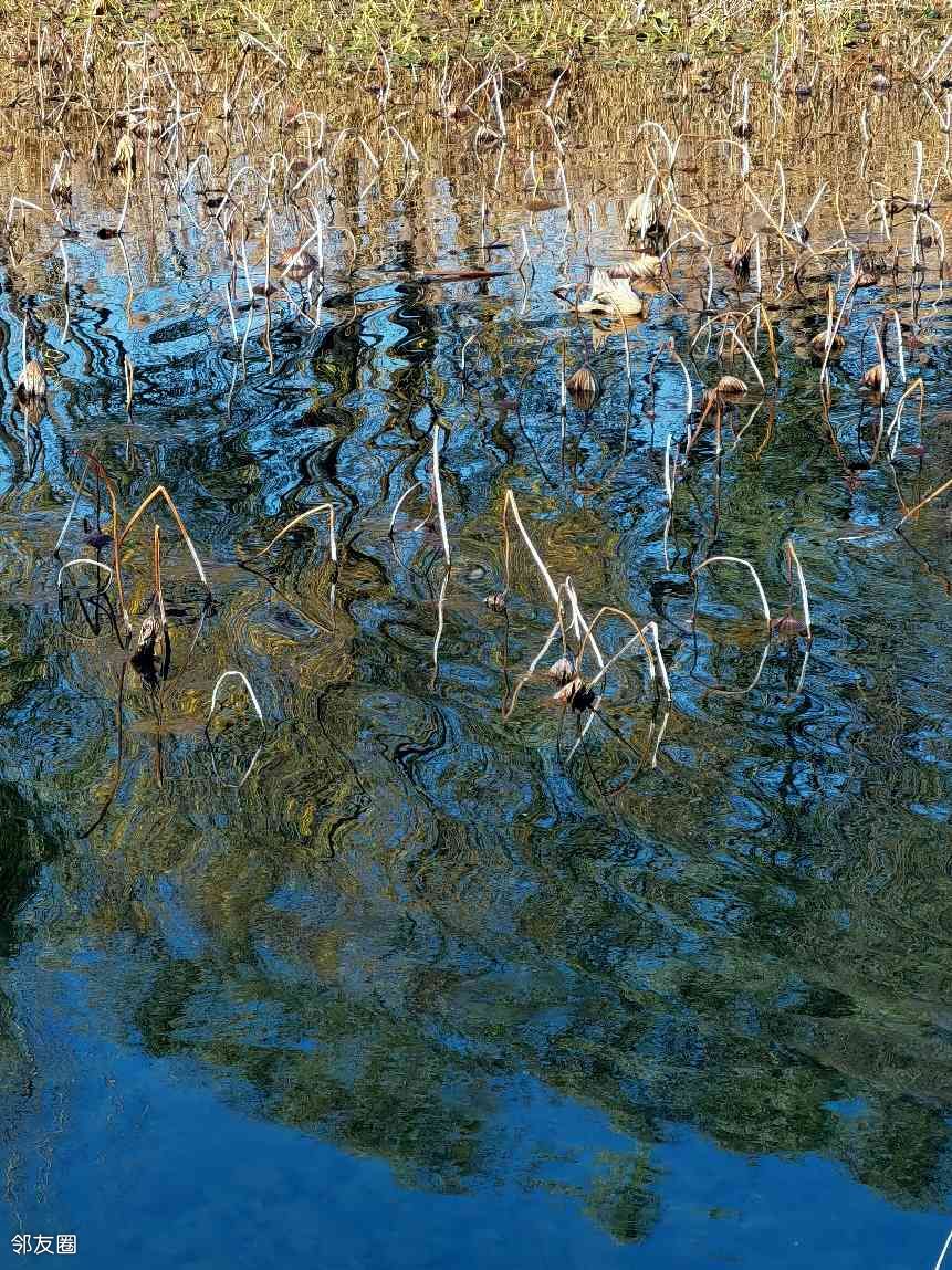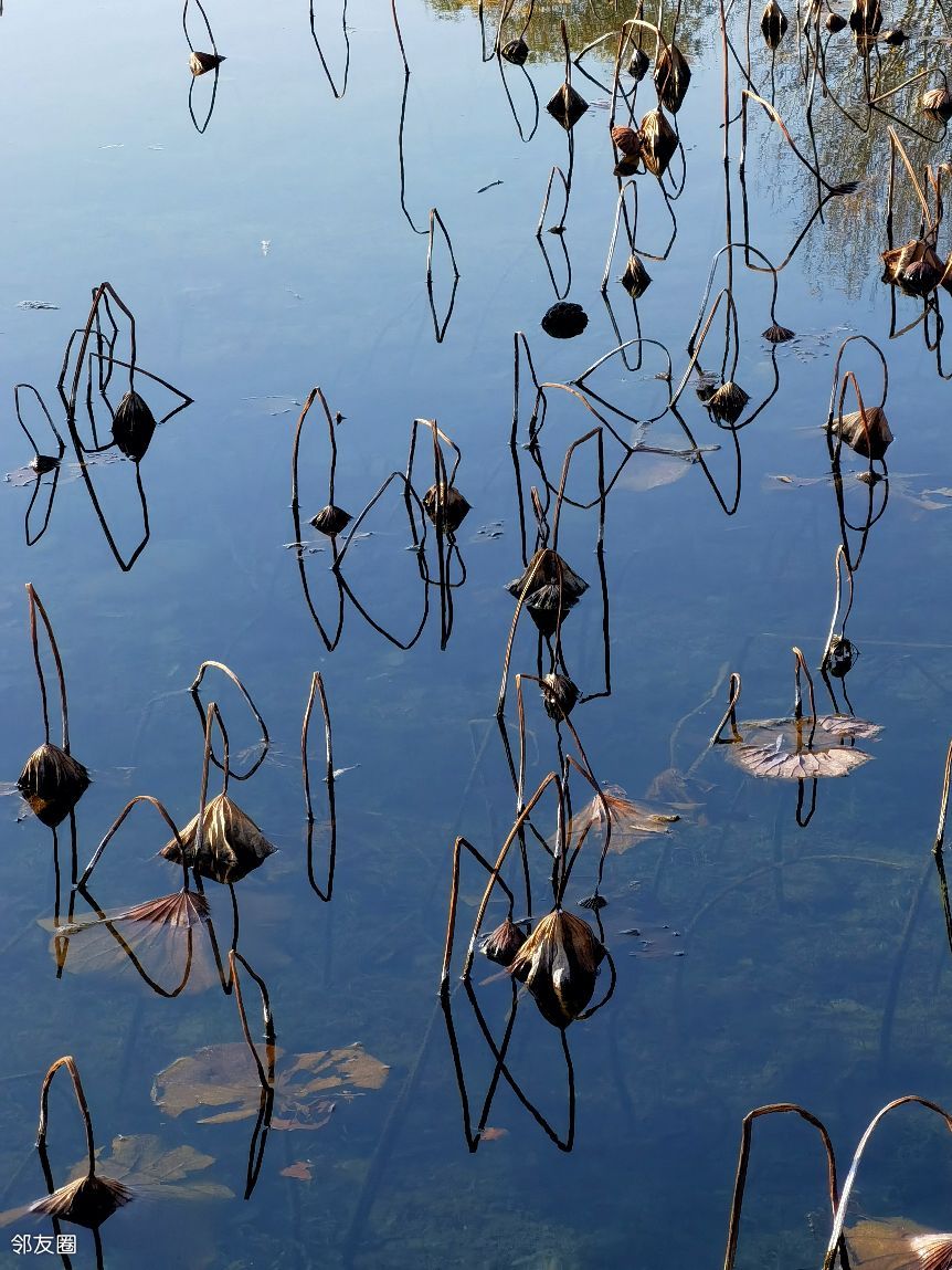 曾经的荷塘,荷花盛开,如同云锦般绚丽多彩,圆圆的荷叶也曾遮住月光,使得鸳鸯可以在荷叶下栖息,而现在瑟瑟秋风,吹散了荷塘的繁华,整个荷塘显得冷清寂寥。