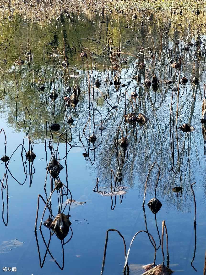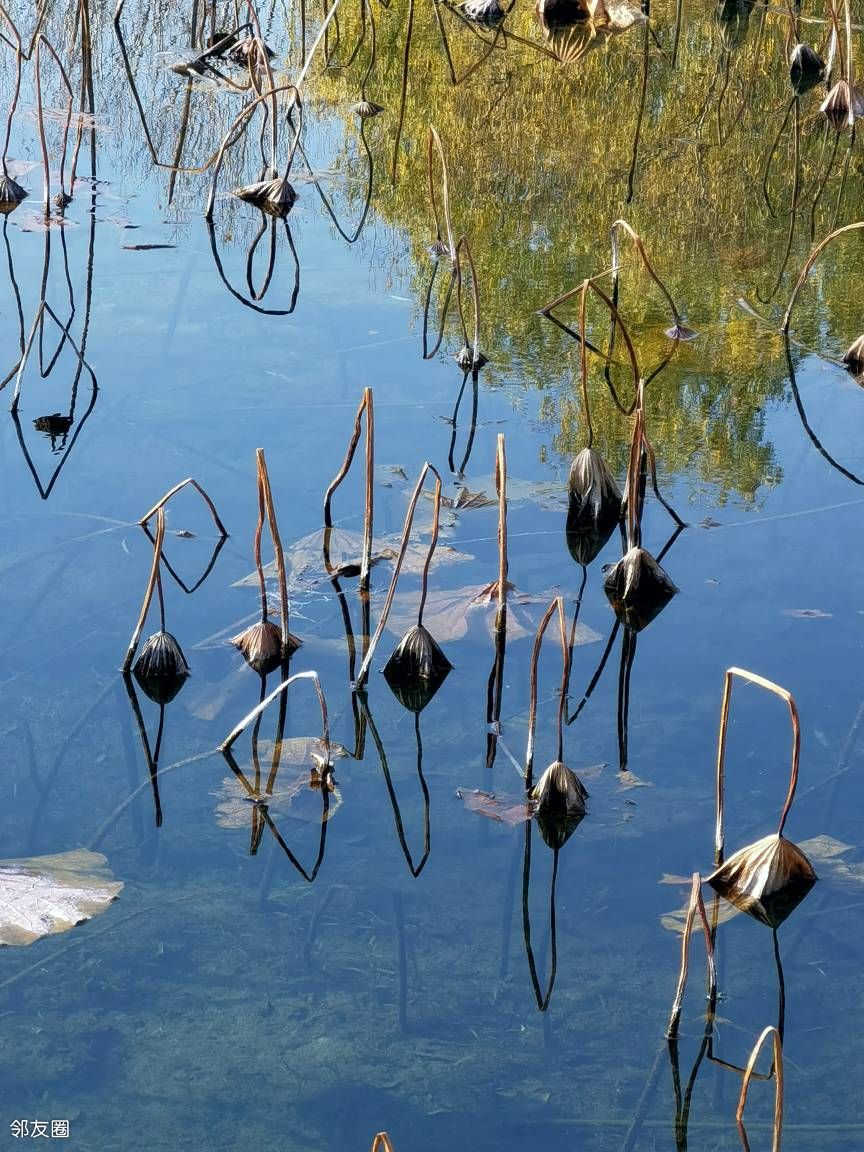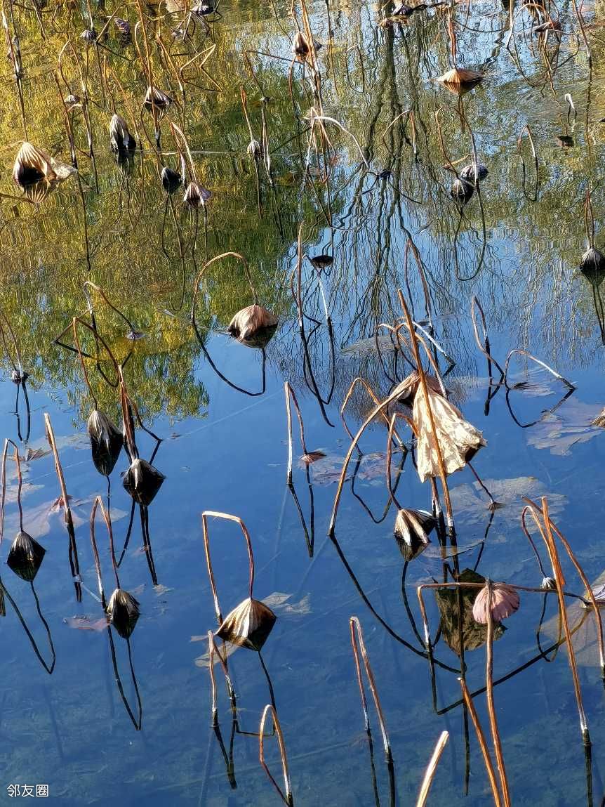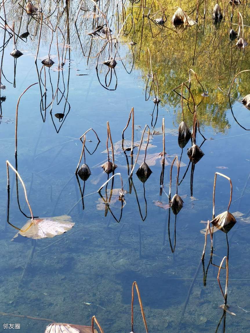曾经的荷塘,荷花盛开,如同云锦般绚丽多彩,圆圆的荷叶也曾遮住月光,使得鸳鸯可以在荷叶下栖息,而现在瑟瑟秋风,吹散了荷塘的繁华,整个荷塘显得冷清寂寥。