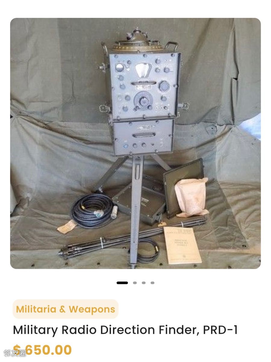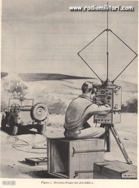AN/PRD-1型测向仪是一款专为移动和便携式无线电测向而设计的设备。其基本设备包括环形天线、超外差式接收机和电源。该设备覆盖100千赫兹至30兆赫兹的频率范围,分为七个重叠频段。在整个频率范围内,该设备能够接收连续波(CW)、间断连续波(ICW)和调幅(AM)信号,并在12.5兆赫兹至30兆赫兹范围内接收调频(FM)信号。整套设备包括天线 AS-536/PRD-1、天线 AT-301/PRD-1、无线电接收机 R-395/PRD-1、发电机电源 DY-79/PRD-1、电池盒 CY-947/PRD-1、测向仪三脚架 MT-870/PRD-1 以及若干其他组件。测向仪 AN/PRD-1 用于确定友方或敌方发射无线电信号的到达方向。通过调整天线方向并操作接收机,即可利用零位法轻松确定信号方向。