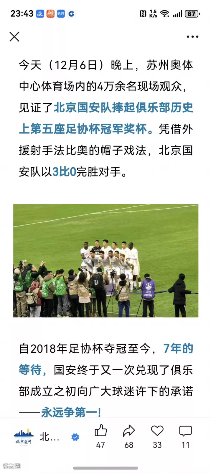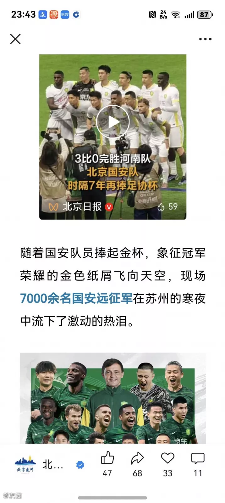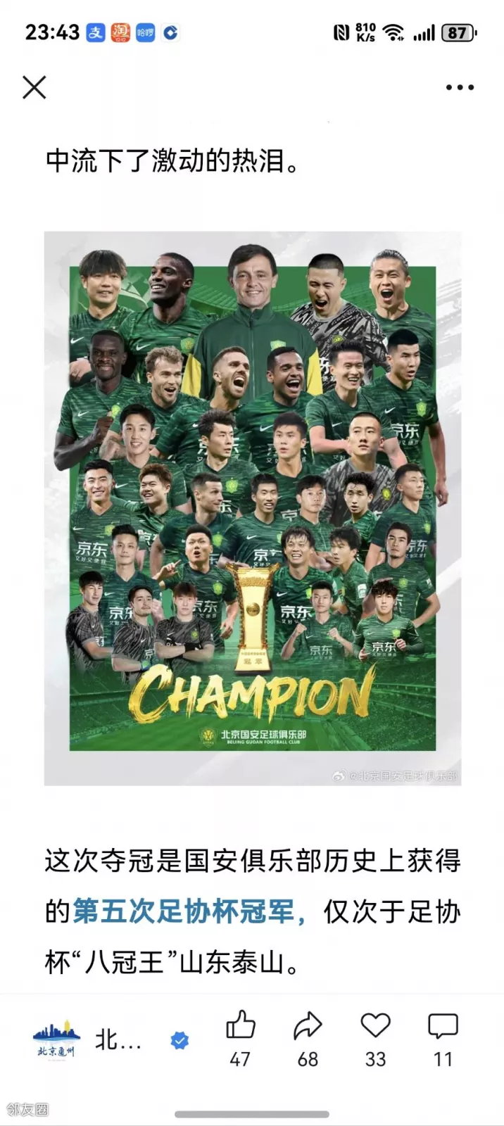 今晚国安3:0河南,时隔七年再次夺冠,您看了吗