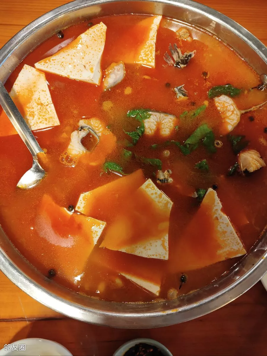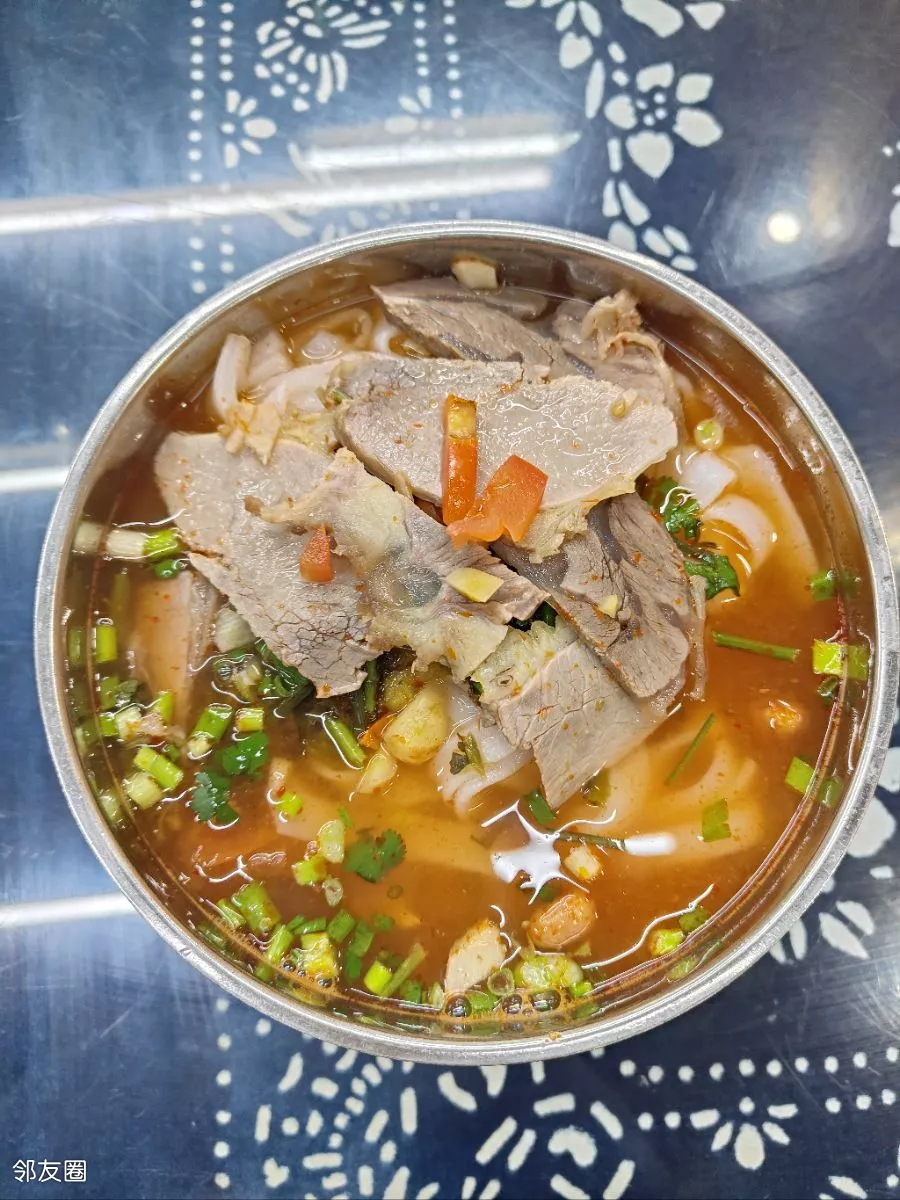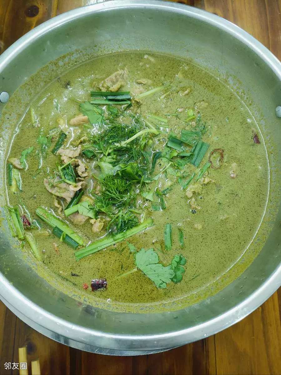 牛瘪,第一次吃。牛瘪是贵州黔东南及广西部分地区侗族、苗族等少数民族的传统食品,又称“百草汤”,由牛胃及小肠中未完全消化的草料混合物加工制成。宰牛后取出胃和小肠内容物,经挤液、过滤,加入牛胆汁、花椒、生姜等佐料熬煮。反正别多想,吃就是了,味道还是不错的