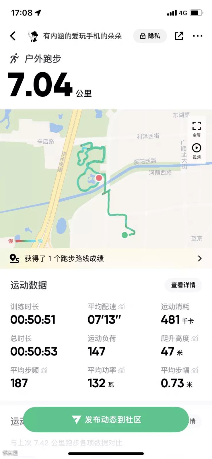 顶着5级大风跑完了今天的7公里,完成了这周的跑步任务