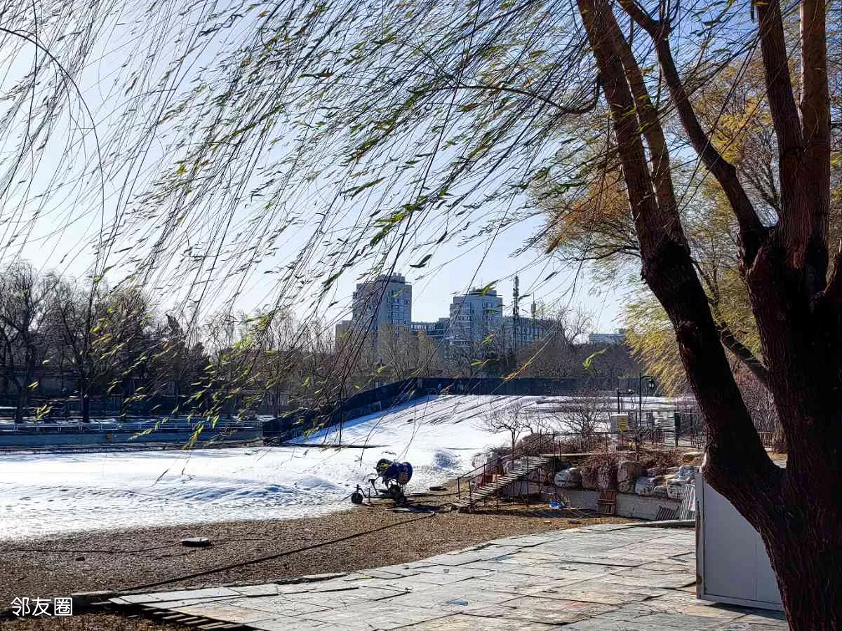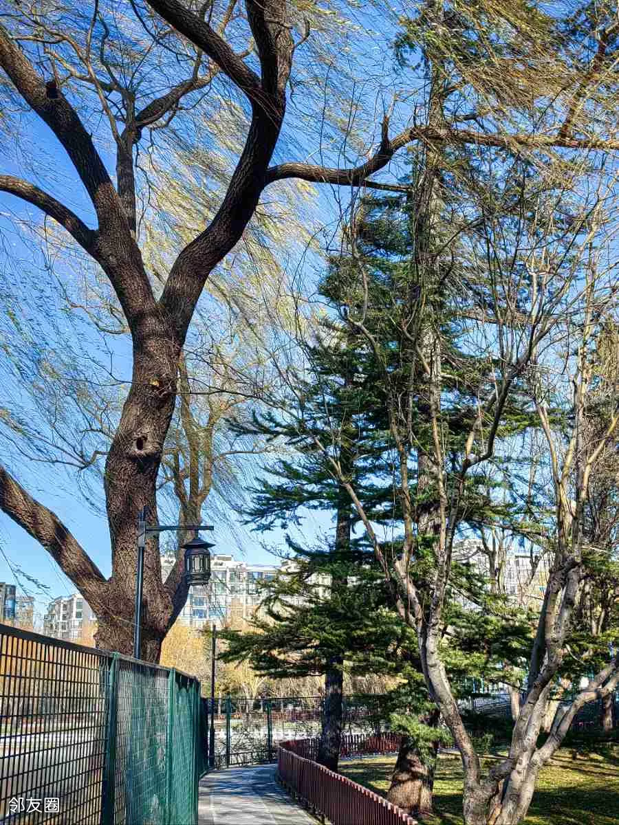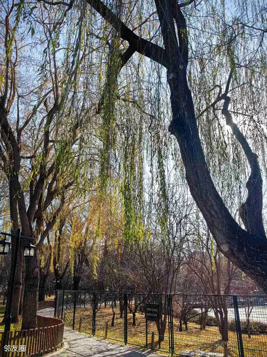 时至真正意义上的冬日了,但这里的柳树叶依然还绿绿的挂在树枝上,为这个冬日增添了一抹生命不息的色彩,再看看它们风中摇曳的样子,真的很养眼呀~