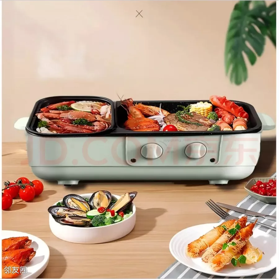 九阳烤涮一体机 HG10-G551,家用涮烤火锅奶油锅,全新未拆封,1300W大功率,分区控温,操作简单,适合单身贵族,情侣约会,家庭聚餐,需要的朋友京旺家园自提,售出不退不换