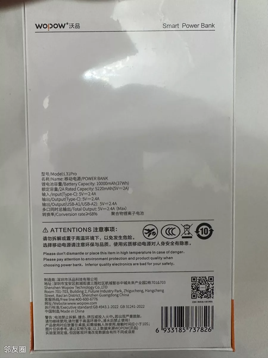 沃品L31Pro充电宝 10000毫安 全新未拆封
