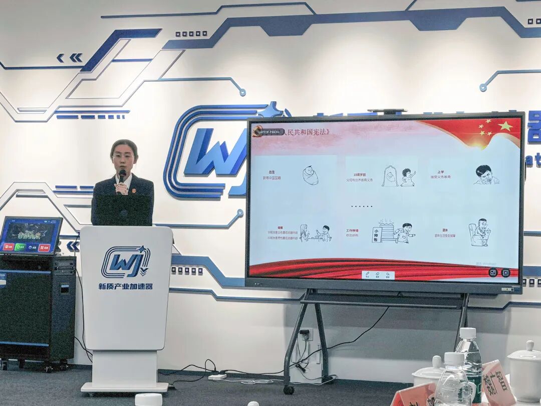 活动现场,法官重点以“宪法与每个人的一生”为切入点,讲明宪法对公民从出生到死亡的全生命周期保障——从出生时享有的人格权、受教育权,到成年后依法享有劳动权、财产权、婚姻自由权,再到年老时获得社会保障、继承权等合法权益,清晰阐释宪法作为国家根本法,不仅是治国安邦的总章程,更是公民权利的保障书,生动解读宪法与企业经营密切相关的法律内容,强化重点领域法治引领,提升企业知识产权保护自觉,鼓励企业积极参与普法实践,争当新质产业领域法治传播者,让参会代表深刻体会到“宪法就在身边”。