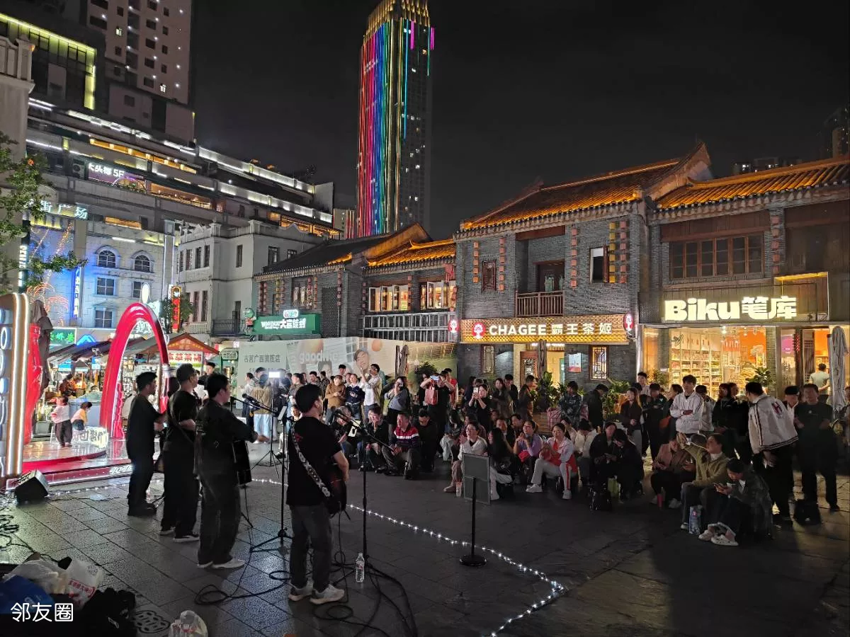 邕江江边,几组歌手相邻不远,难道不怕互相影响跑调吗