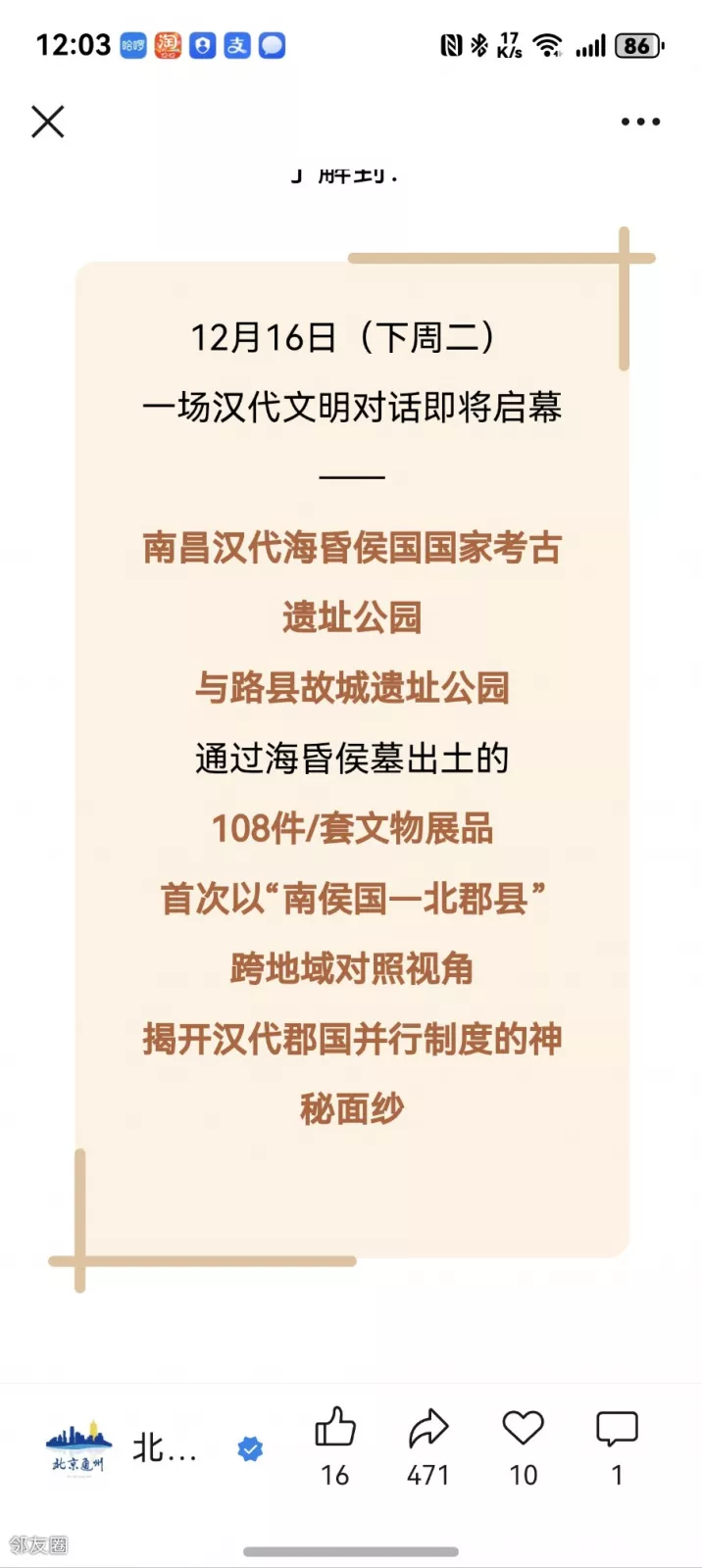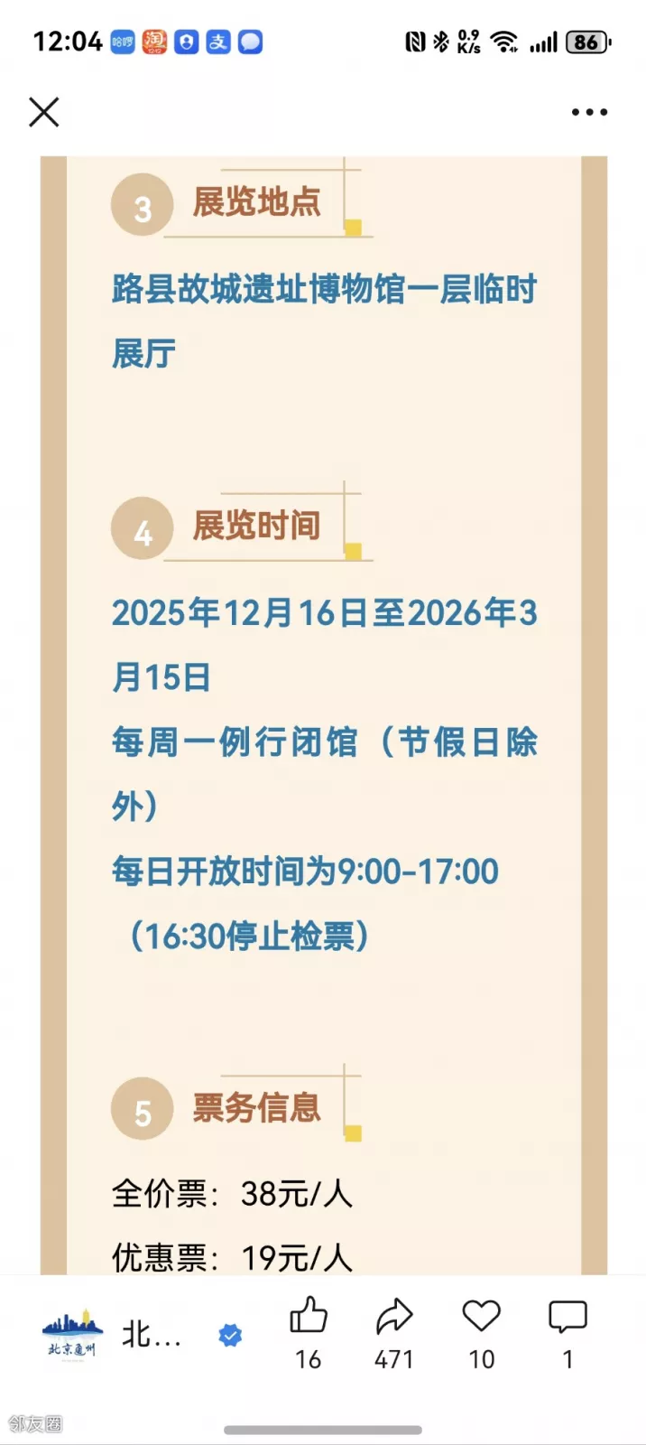 12月16日开始在路县故城遗址博物馆有临展。