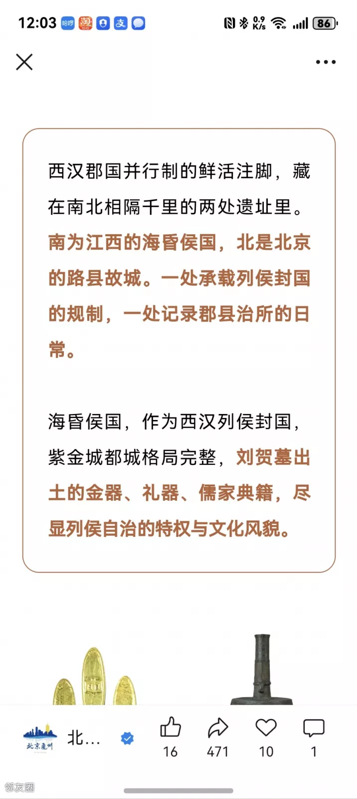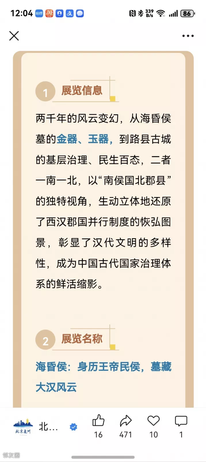 海昏候出土文物早年曾在首博展出过,我们前去参观还拍下很照片?