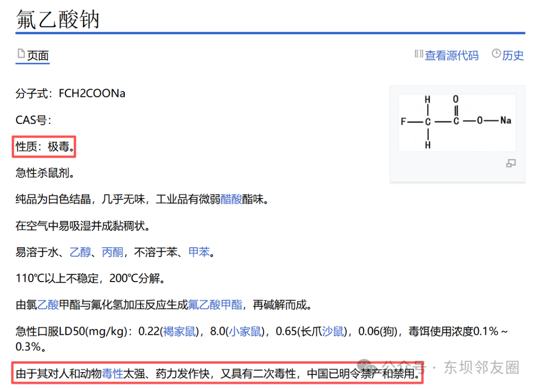 公开资料显示,氟乙酸钠常被用于制作鼠药、农药等,在我国被明令禁止生产、销售和使用。