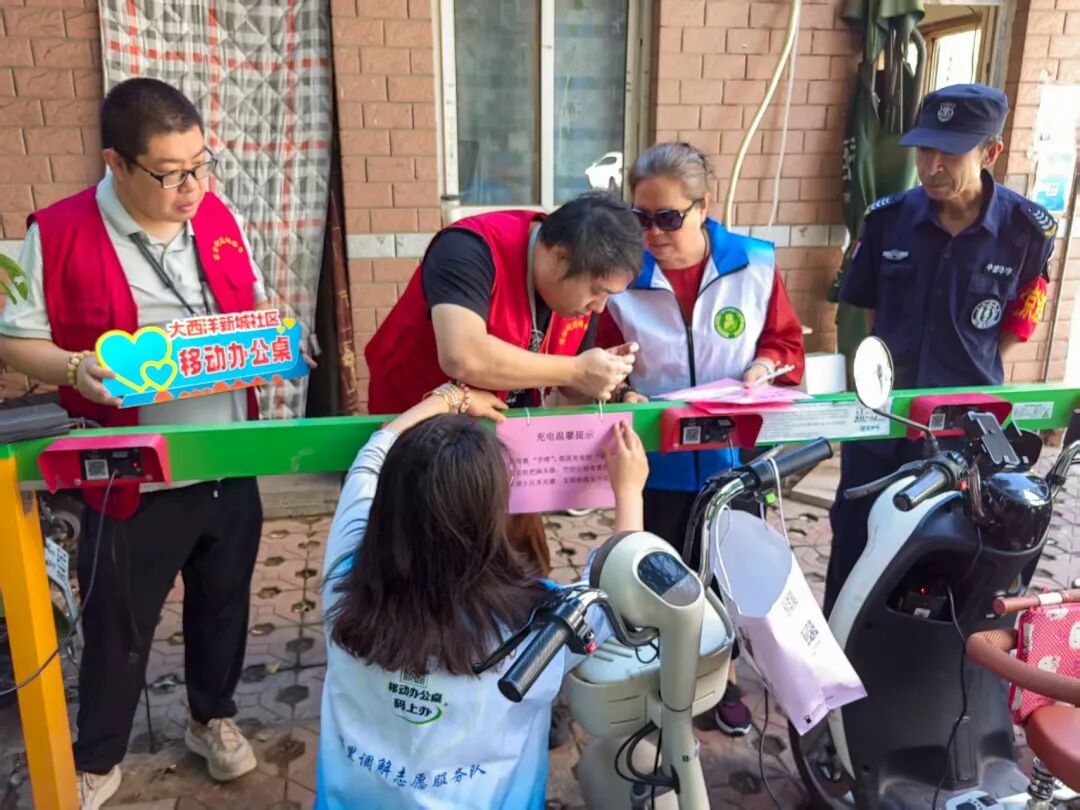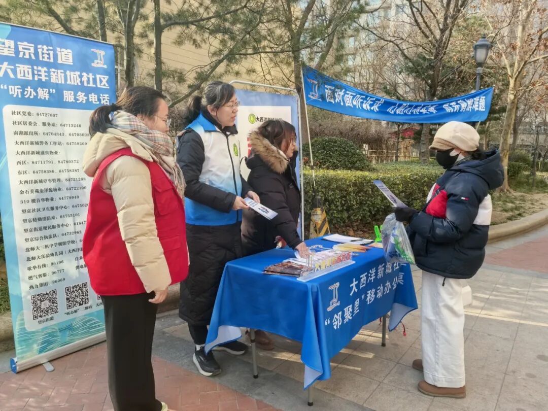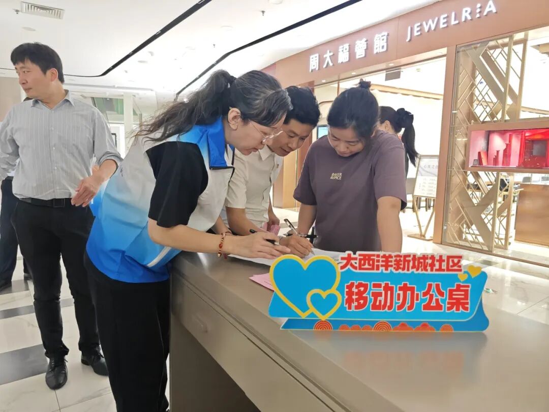 在街道工委、办事处的统筹指导下,大西洋新城社区对“移动办公桌”服务模式进行迭代升级为“邻聚里”移动办公桌,同时打造“党员八带头移动听办解”工作法,以党建引领推动服务效能提质增效,让便民服务更贴民心、更具温度。