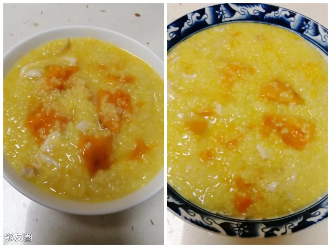 索性就三合一,南瓜🎃咸鸭蛋🥚小米熬成粥,还挺好喝的。尤其是流油的蛋黄沙沙的口感,妙不可言的味道好极了!