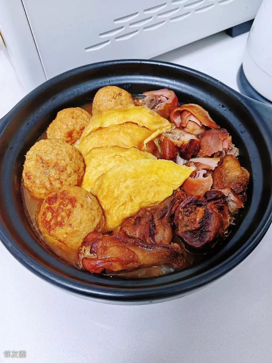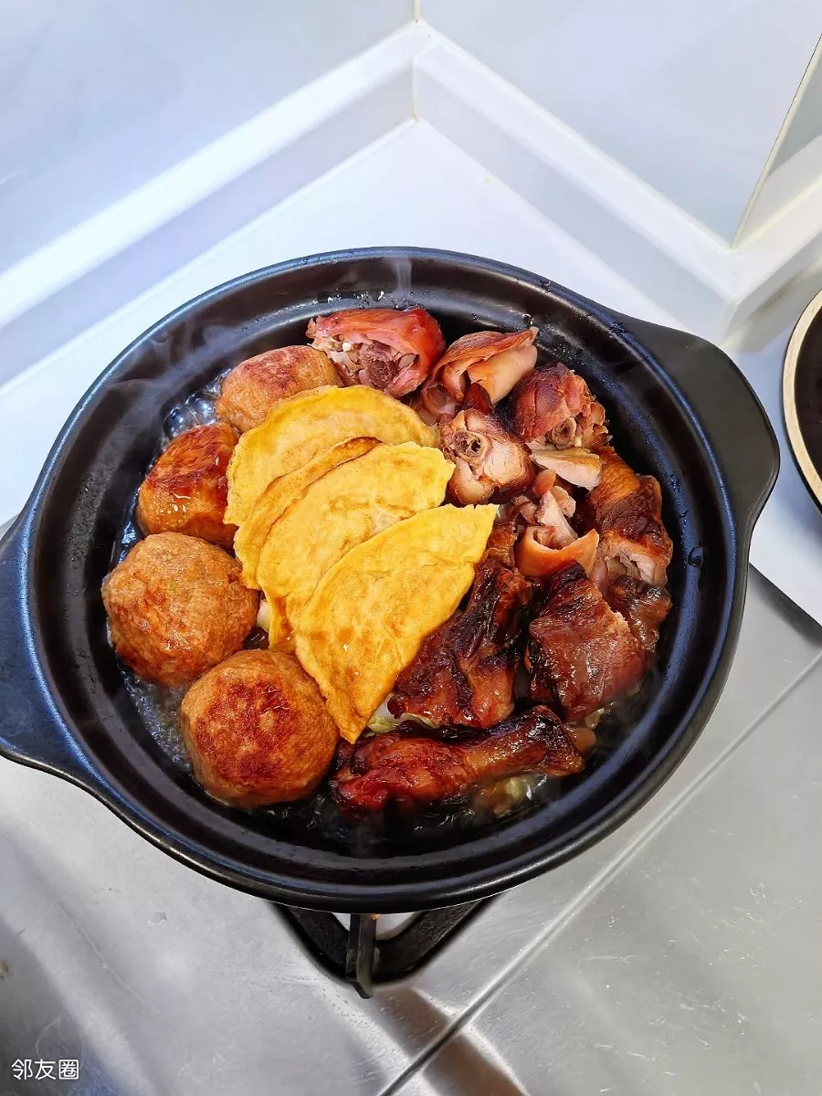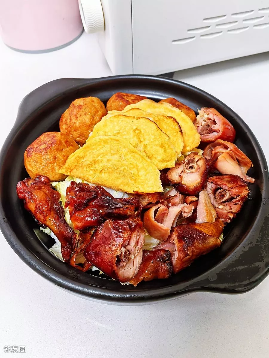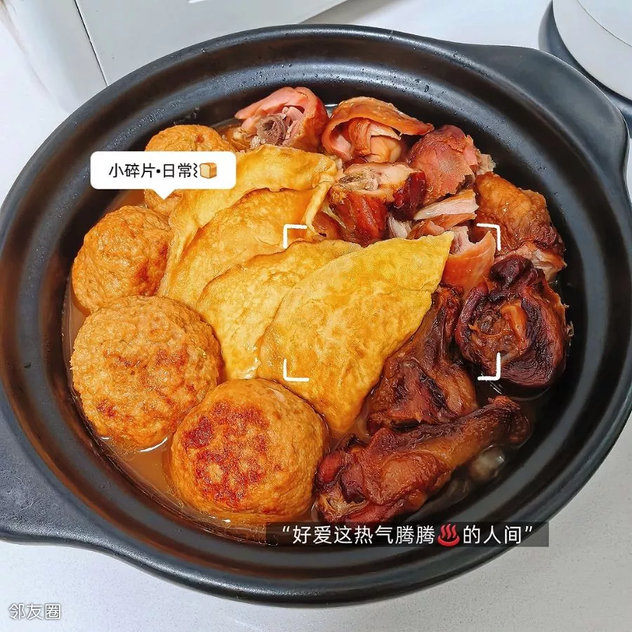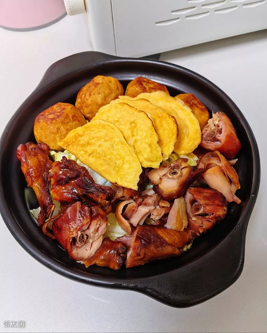 一砂锅:除了垫底的娃娃菜不是我种的,风干腊鸡腿,四喜丸子,蛋饺,都是我们自己加工的预制菜
