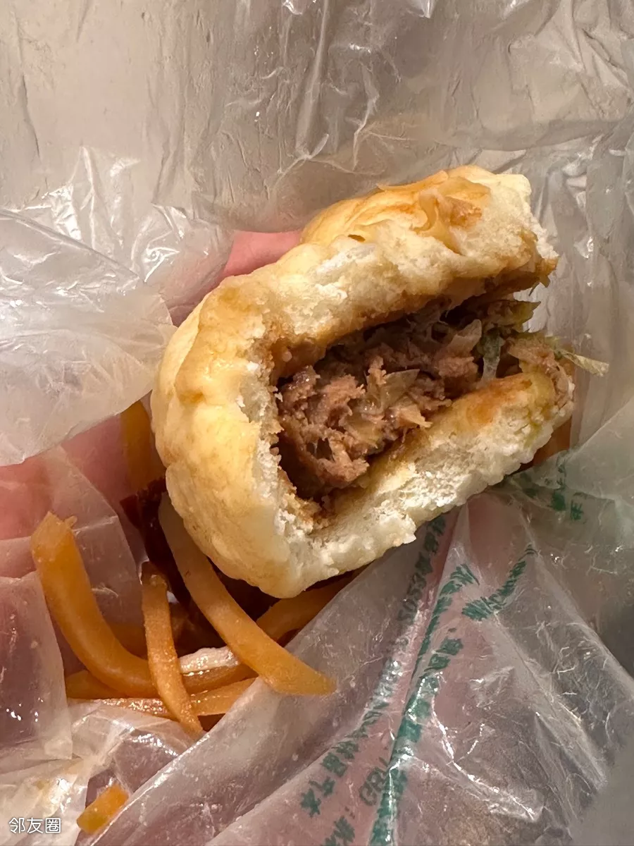 牛马的早餐~~紫光园咸菜丝+牛肉大包砸