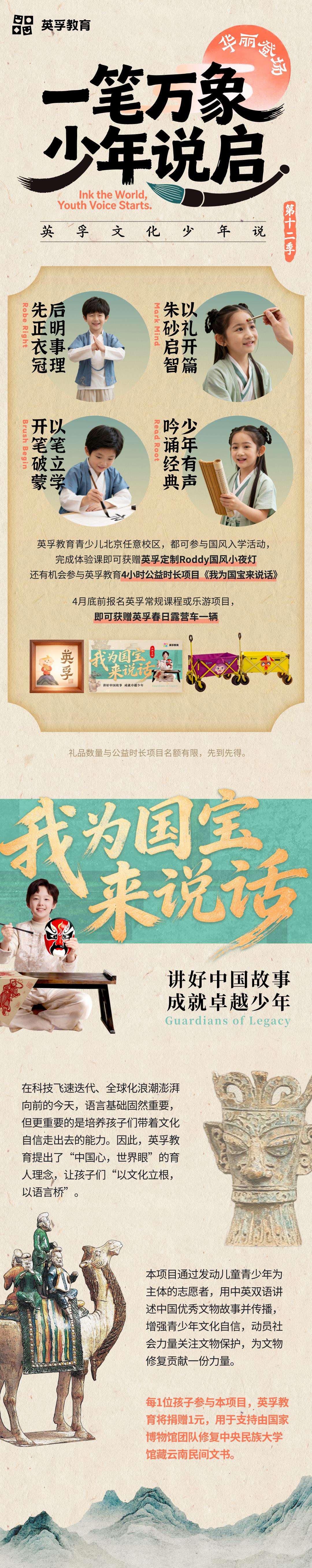 潮爸辣妈看过来~英孚教育重磅推出《我为国宝来说话》公益活动!完成线下体验课,即有机会参与 4 小时公益时长项目,还能领取英孚定制 Roddy 国风小夜灯!4月底前报名英孚常规课程或乐游项目,即可获赠英孚春日露营车一辆,名额有限,先到先得,手慢无~