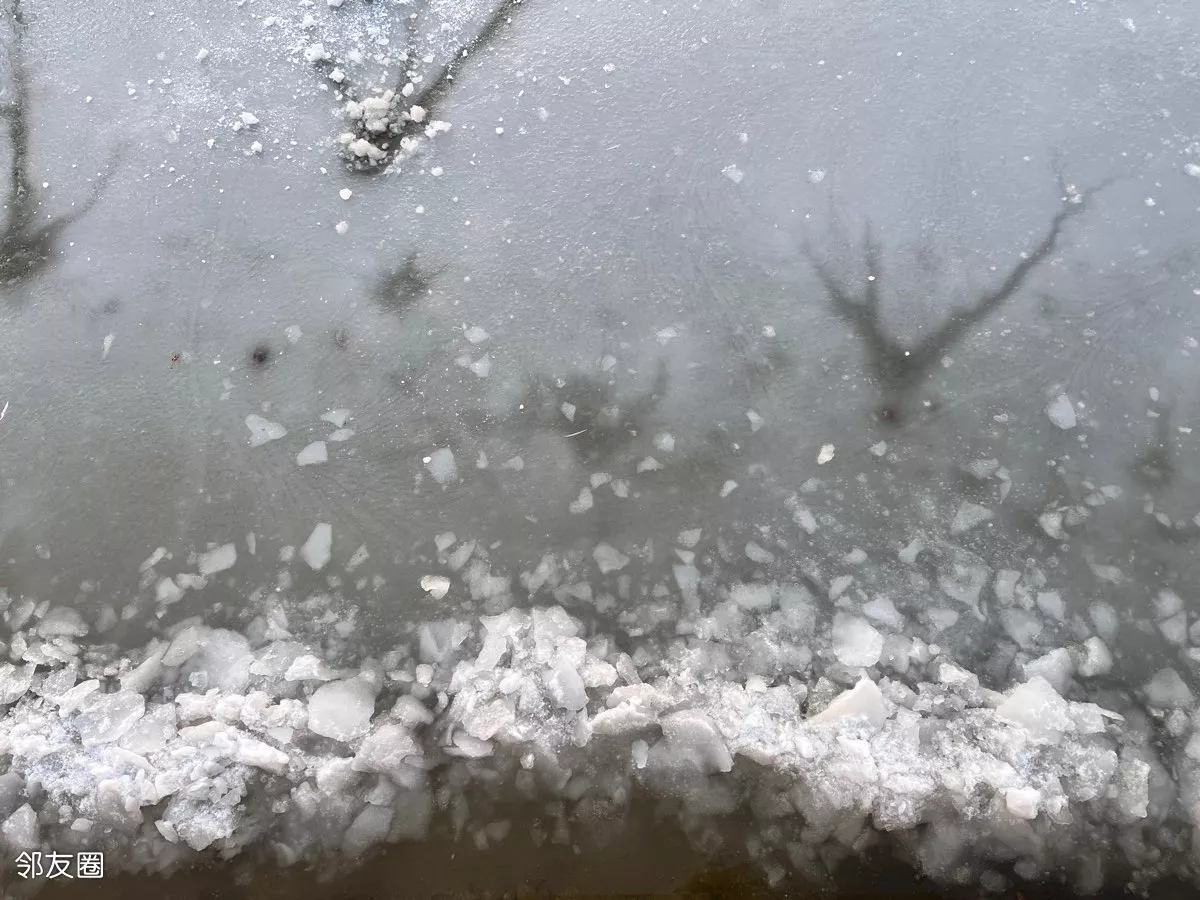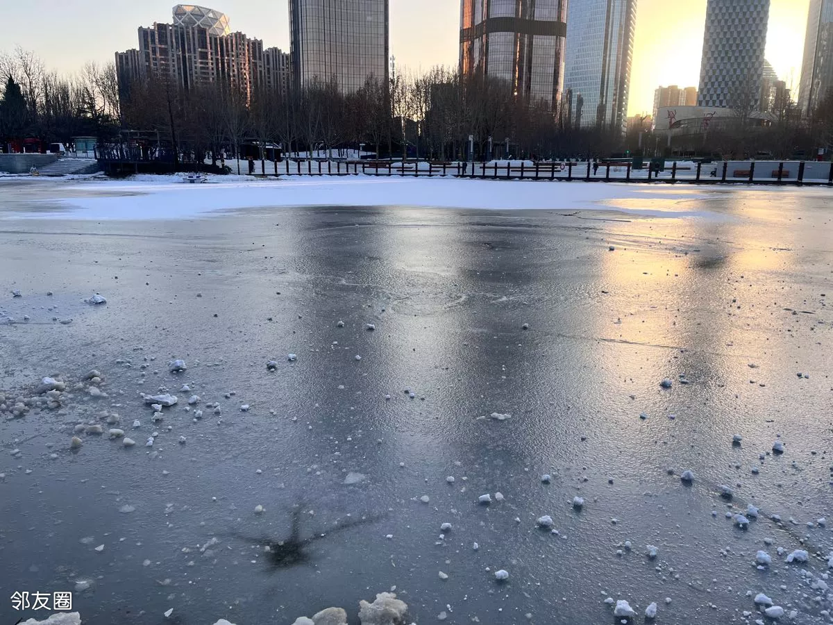冰层貌似不太厚,别说南方人看到下雪,,结冰都稀罕的不得了,现在北京能看到一片冰场都快成稀罕物了。