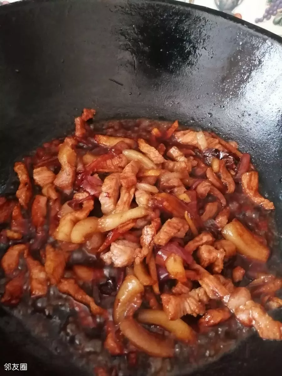 买的袋装榨菜,不是榨菜丝而且是条状的。所以我也切的是肉条,相铺相成!