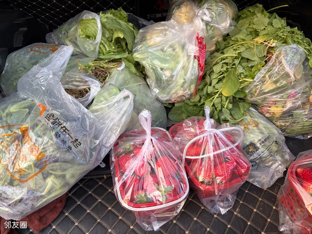 回来路上又摘了草莓,满载而归,四家一分挺好