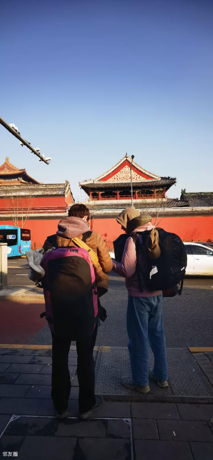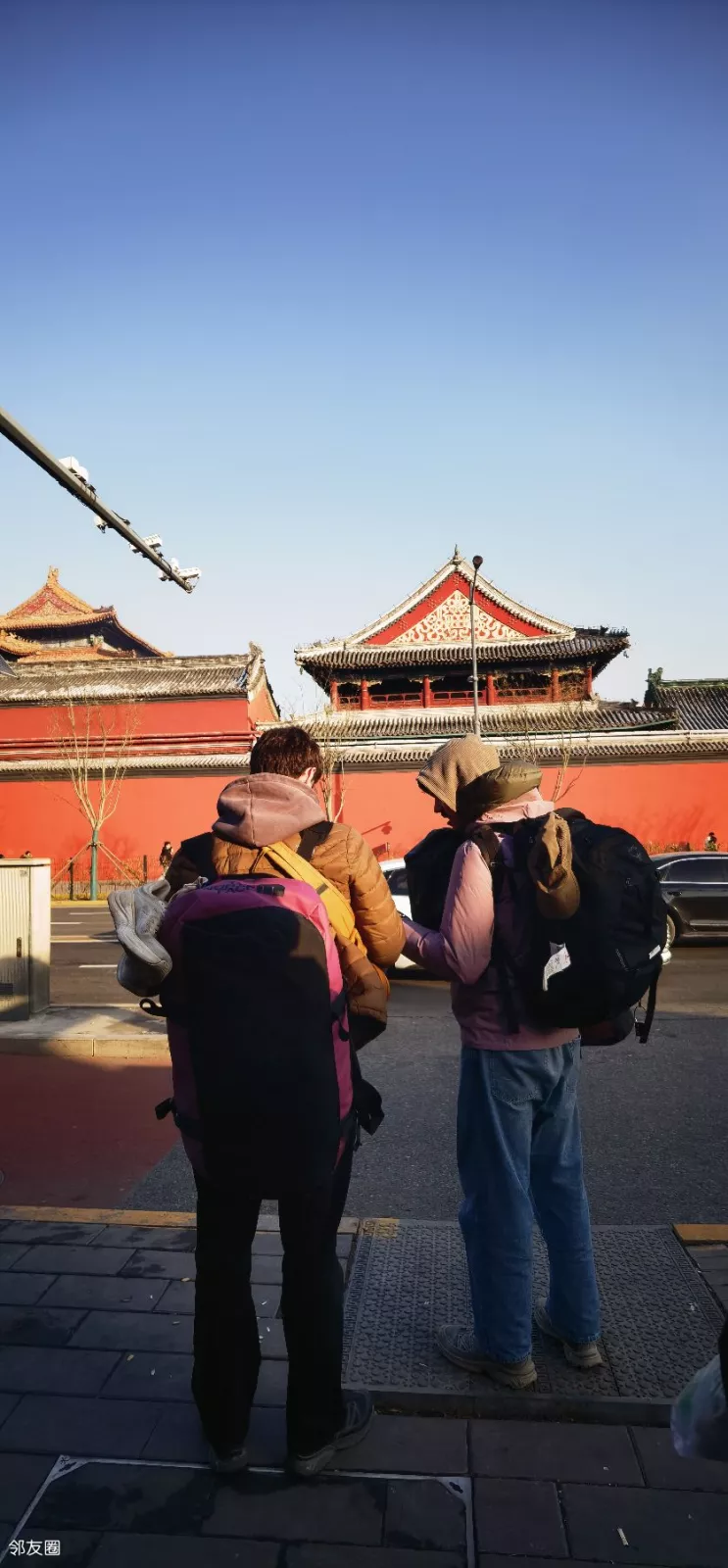 俩异国背包客挺有意思的,一个背包侧还挂着一双鞋