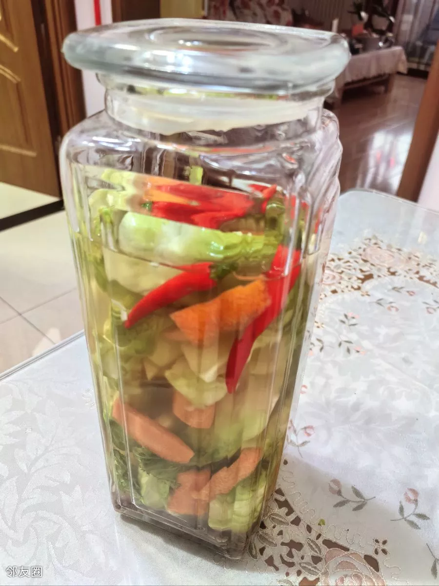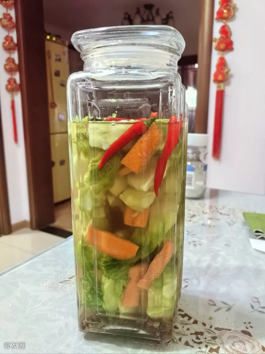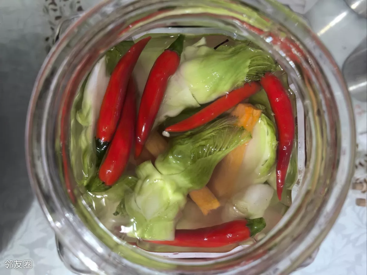 制作简单,胡萝卜、儿菜、小米辣适量,花椒水另加纯净水,用有密封盖的玻璃瓶,泡三五天就可以吃了