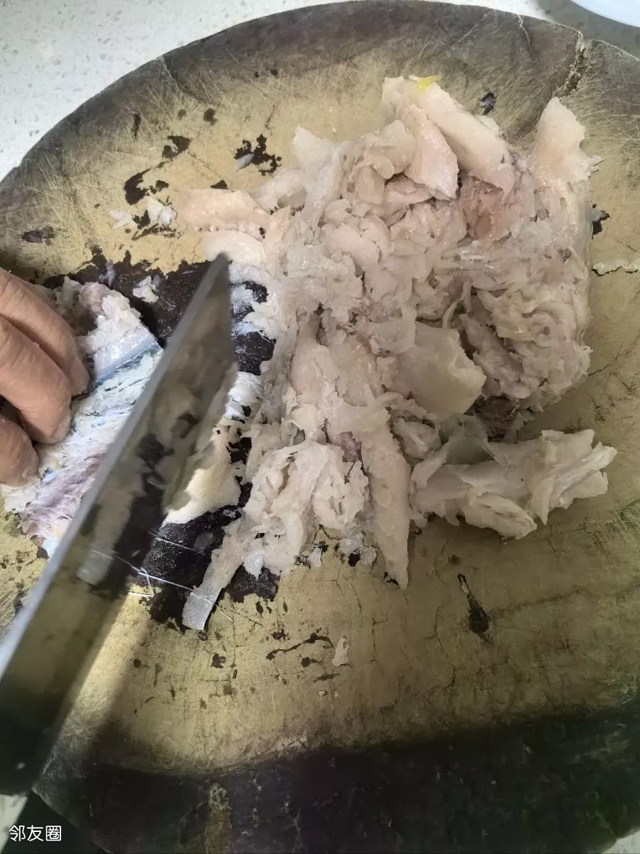 1、处理食材:准备新鲜鲅鱼1条(约650g)偏肥猪肉馅150g、韭菜250g、生姜1小块、大葱1段;将鲅鱼处理成净鱼肉剁成鱼泥,生姜、大葱加清水打成葱姜水,韭菜切碎备用