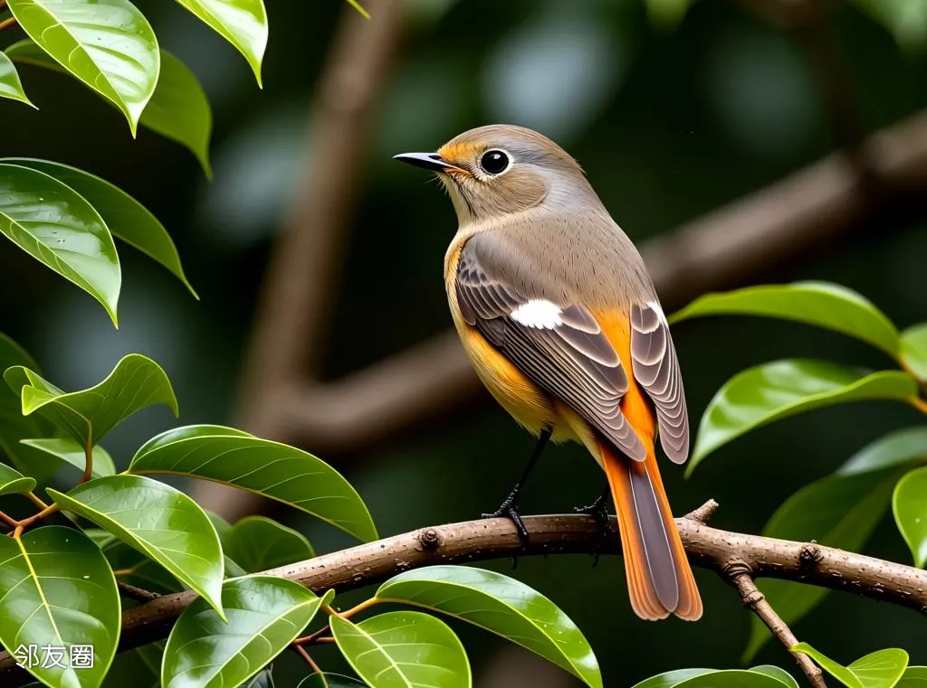 由于外形靓丽,北红尾鸲也是常见的国画素材,最早在五代黄筌的《写生珍禽图》中,就有此鸟。